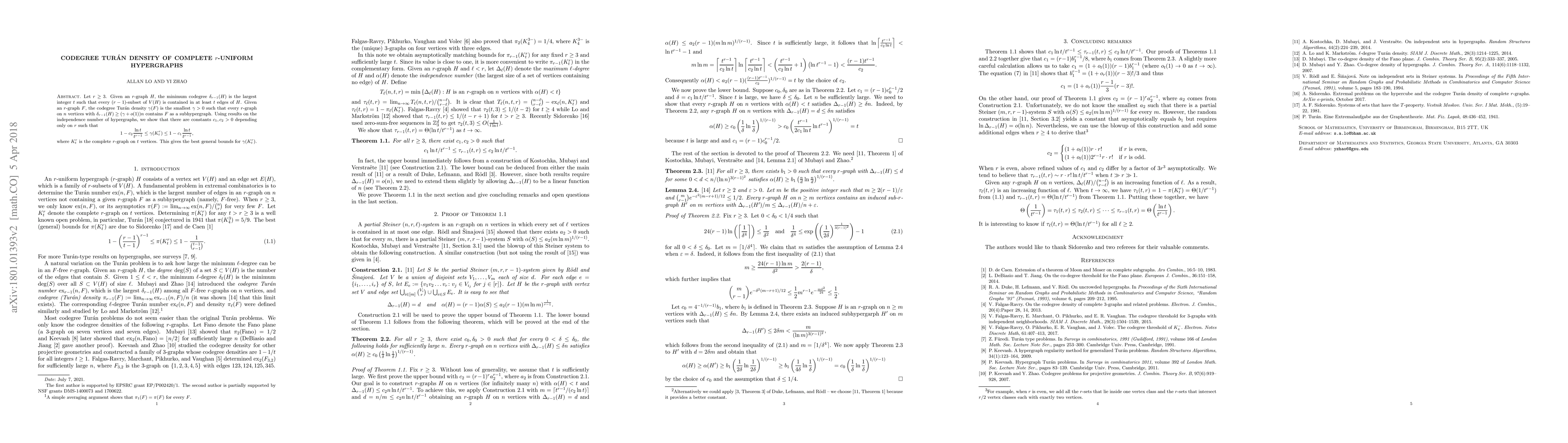 Let $r\ge 3$. Given an $r$-graph $H$, the minimum codegree $\delta_{r-1}(H)$ is the largest integer $t$ such that every $(r-1)$-subset of $V(H)$ is contained in at least $t$ edges of $H$. Given an $r$-graph $F$, the codegree Tur\'an density $\gamma(F)$ is the smallest $\gamma >0$ such that every $r$-graph on $n$ vertices with $\delta_{r-1}(H)\ge (\gamma + o(1))n$ contains $F$ as a subhypergraph. Using results on the independence number of hypergraphs, we show that there are constants $c_1, c_2>0$ depending only on $r$ such that \[ 1 - c_2 \frac{\ln t}{t^{r-1}} \le \gamma(K_t^r) \le 1 - c_1 \frac{\ln t}{t^{r-1}}, \] where $K_t^r$ is the complete $r$-graph on $t$ vertices. This gives the best general bounds for $\gamma(K_t^r)$.