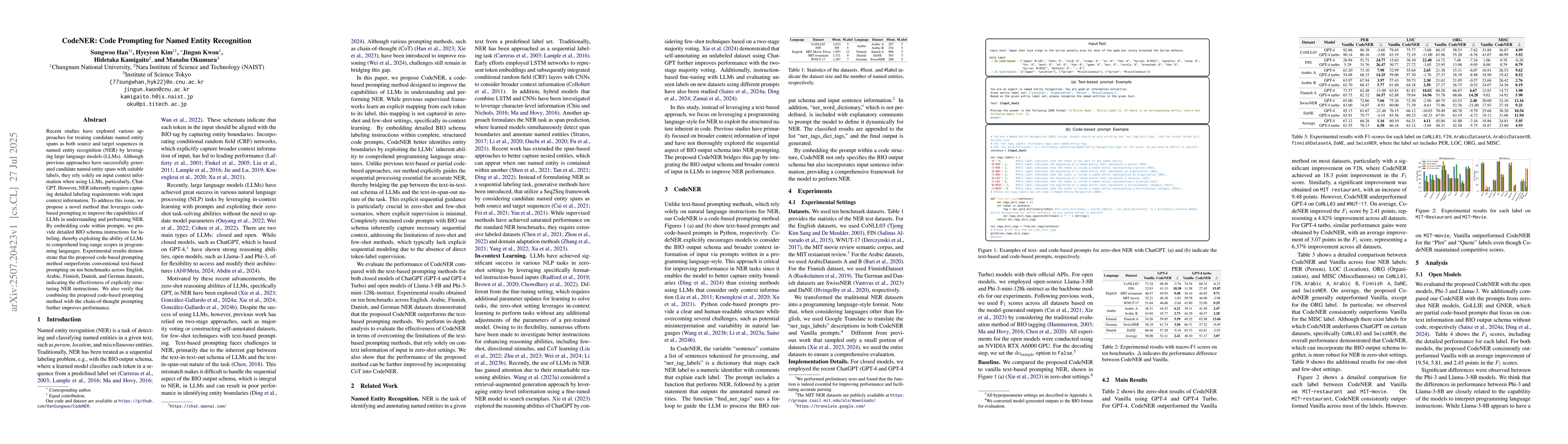 Recent studies have explored various approaches for treating candidate named entity spans as both source and target sequences in named entity recognition (NER) by leveraging large language models (LLMs). Although previous approaches have successfully generated candidate named entity spans with suitable labels, they rely solely on input context information when using LLMs, particularly, ChatGPT. However, NER inherently requires capturing detailed labeling requirements with input context information. To address this issue, we propose a novel method that leverages code-based prompting to improve the capabilities of LLMs in understanding and performing NER. By embedding code within prompts, we provide detailed BIO schema instructions for labeling, thereby exploiting the ability of LLMs to comprehend long-range scopes in programming languages. Experimental results demonstrate that the proposed code-based prompting method outperforms conventional text-based prompting on ten benchmarks across English, Arabic, Finnish, Danish, and German datasets, indicating the effectiveness of explicitly structuring NER instructions. We also verify that combining the proposed code-based prompting method with the chain-of-thought prompting further improves performance.