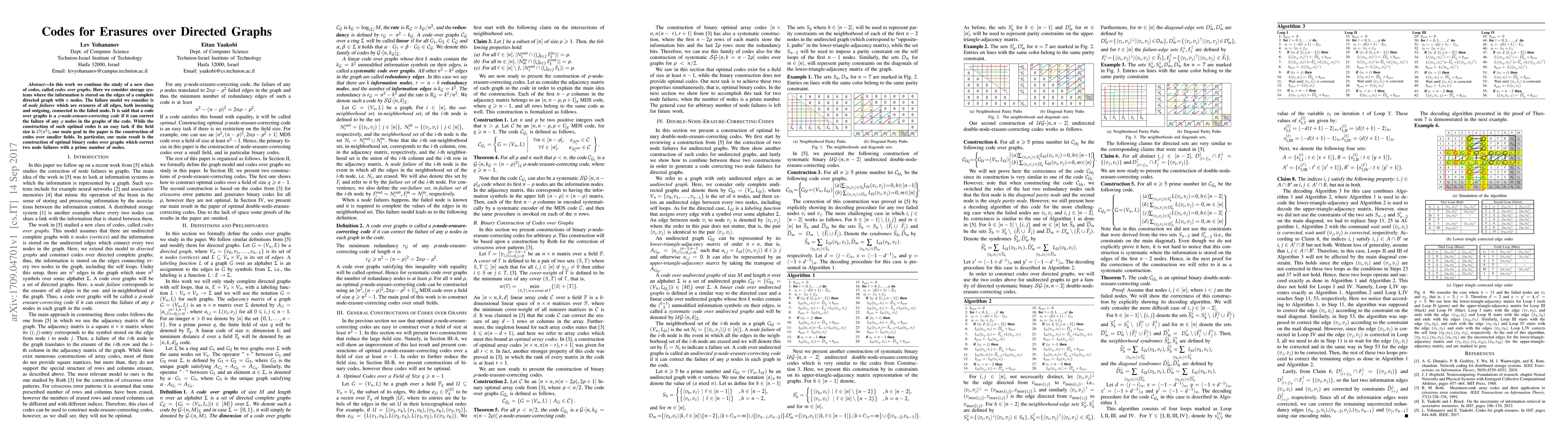 In this work we continue the study of a new class of codes, called \emph{codes over graphs}. Here we consider storage systems where the information is stored on the edges of a complete directed graph with $n$ nodes. The failure model we consider is of \emph{node failures} which are erasures of all edges, both incoming and outgoing, connected to the failed node. It is said that a code over graphs is a \textit{$\rho$-node-erasure-correcting code} if it can correct the failure of any $\rho$ nodes in the graphs of the code. While the construction of such optimal codes is an easy task if the field size is ${\cal O} (n^2)$, our main goal in the paper is the construction of codes over smaller fields. In particular, our main result is the construction of optimal binary codes over graphs which correct two node failures with a prime number of nodes.
