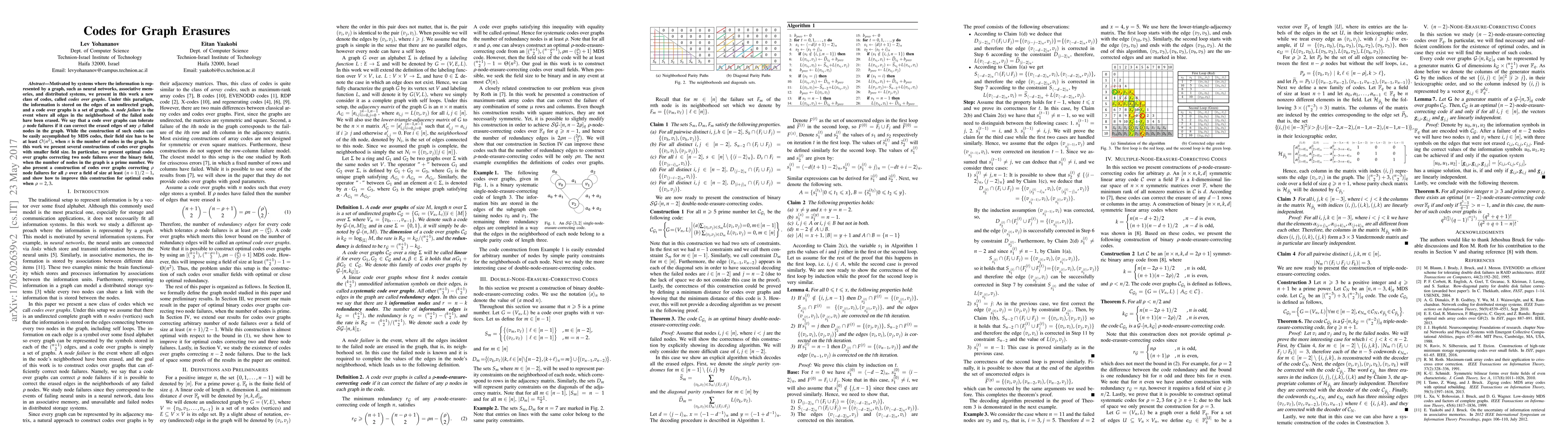 Motivated by systems where the information is represented by a graph, such as neural networks, associative memories, and distributed systems, we present in this work a new class of codes, called codes over graphs. Under this paradigm, the information is stored on the edges of an undirected graph, and a code over graphs is a set of graphs. A node failure is the event where all edges in the neighborhood of the failed node have been erased. We say that a code over graphs can tolerate $\rho$ node failures if it can correct the erased edges of any $\rho$ failed nodes in the graph. While the construction of such codes can be easily accomplished by MDS codes, their field size has to be at least $O(n^2)$, when $n$ is the number of nodes in the graph. In this work we present several constructions of codes over graphs with smaller field size. In particular, we present optimal codes over graphs correcting two node failures over the binary field, when the number of nodes in the graph is a prime number. We also present a construction of codes over graphs correcting $\rho$ node failures for all $\rho$ over a field of size at least $(n+1)/2-1$, and show how to improve this construction for optimal codes when $\rho=2,3$.