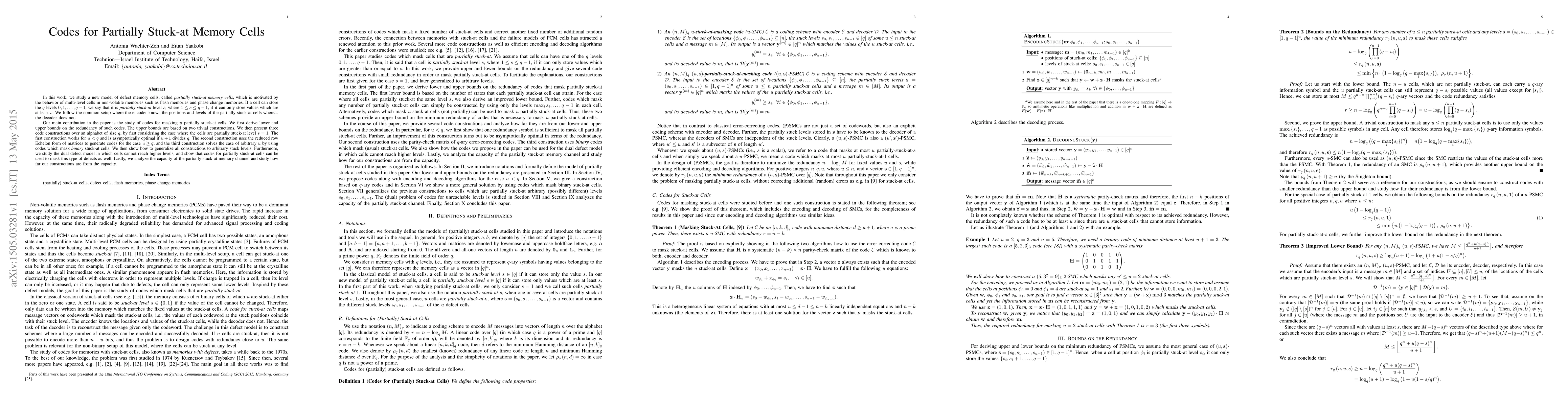 stuck-at memory cells, which is motivated by the behavior of multi-level cells