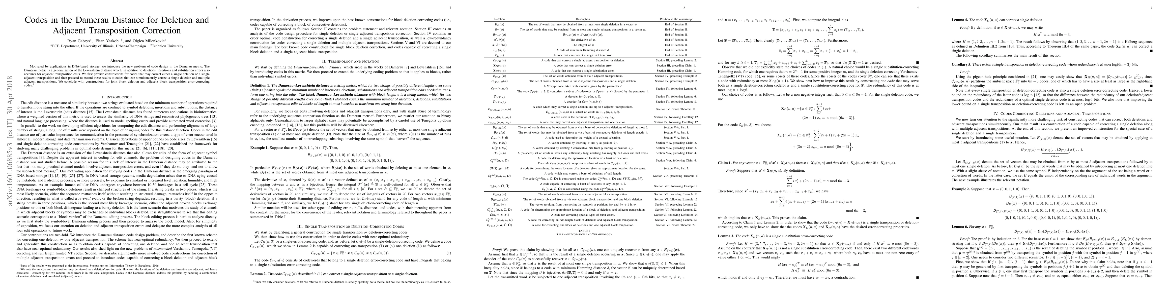 This paper explores the design of error-correcting codes in the Damerau metric for DNA storage applications, introducing methods to correct single deletions, adjacent transpositions, and combinations of these errors, culminating in codes that can handle both block deletions and transpositions.