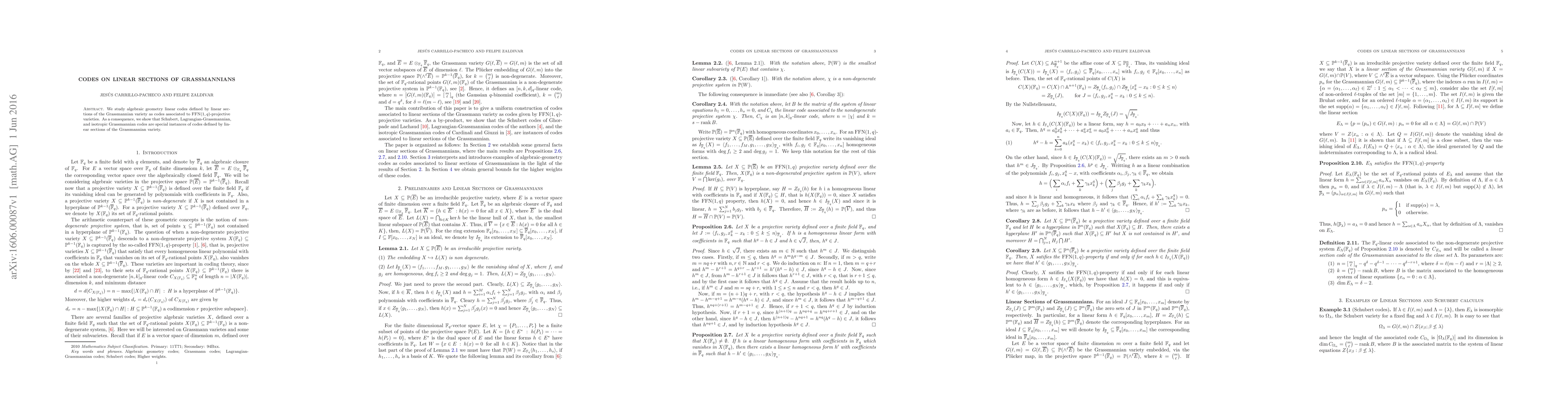 This paper studies codes defined by linear sections of Grassmannians, showing that certain types of codes are special instances of these codes. It provides new insights into algebraic geometry linear codes.