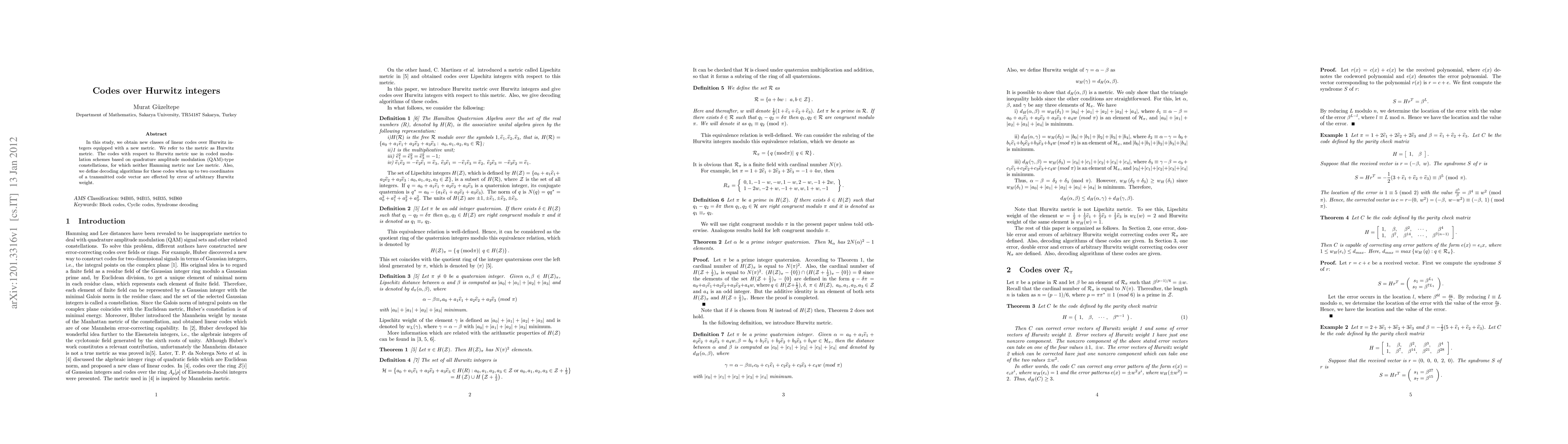 The use of Hurwitz codes in this context is novel and has potential applications in various fields.