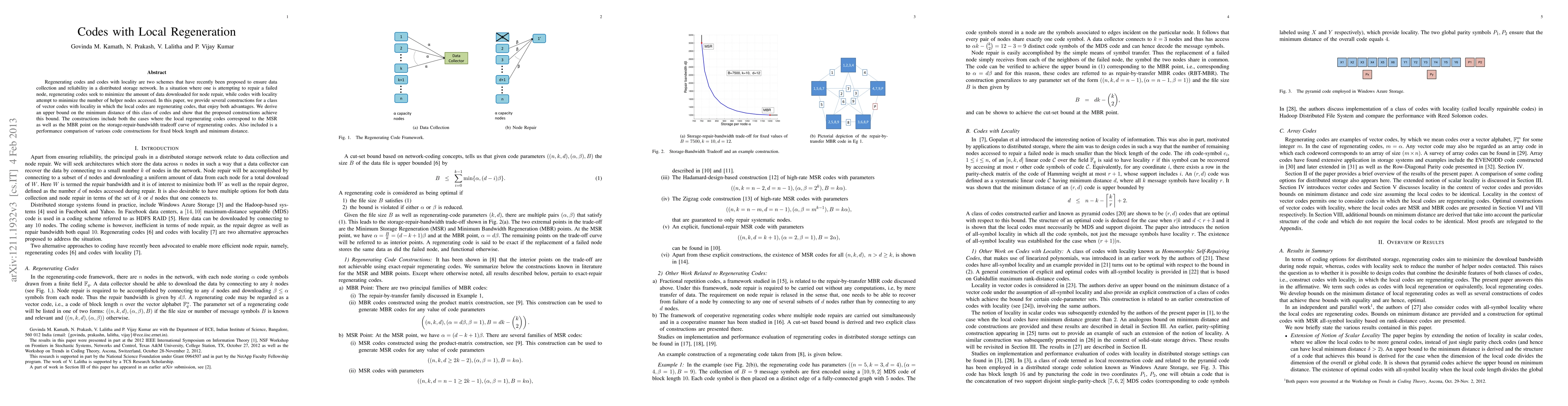 Regenerating codes and codes with locality are two schemes that have recently been proposed to ensure data collection and reliability in a distributed storage network. In a situation where one is attempting to repair a failed node, regenerating codes seek to minimize the amount of data downloaded for node repair, while codes with locality attempt to minimize the number of helper nodes accessed. In this paper, we provide several constructions for a class of vector codes with locality in which the local codes are regenerating codes, that enjoy both advantages. We derive an upper bound on the minimum distance of this class of codes and show that the proposed constructions achieve this bound. The constructions include both the cases where the local regenerating codes correspond to the MSR as well as the MBR point on the storage-repair-bandwidth tradeoff curve of regenerating codes. Also included is a performance comparison of various code constructions for fixed block length and minimum distance.