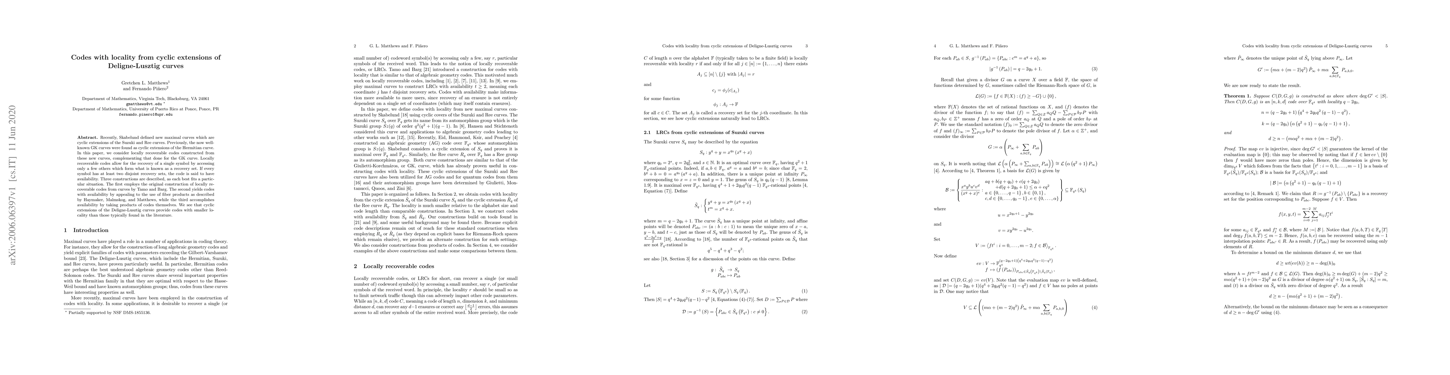 Recently, Skabelund defined new maximal curves which are cyclic extensions of the Suzuki and Ree curves. Previously, the now well-known GK curves were found as cyclic extensions of the Hermitian curve. In this paper, we consider locally recoverable codes constructed from these new curves, complementing that done for the GK curve. Locally recoverable codes allow for the recovery of a single symbol by accessing only a few others which form what is known as a recovery set. If every symbol has at least two disjoint recovery sets, the code is said to have availability. Three constructions are described, as each best fits a particular situation. The first employs the original construction of locally recoverable codes from curves by Tamo and Barg. The second yields codes with availability by appealing to the use of fiber products as described by Haymaker, Malmskog, and Matthews, while the third accomplishes availability by taking products of codes themselves. We see that cyclic extensions of the Deligne-Lusztig curves provide codes with smaller locality than those typically found in the literature.