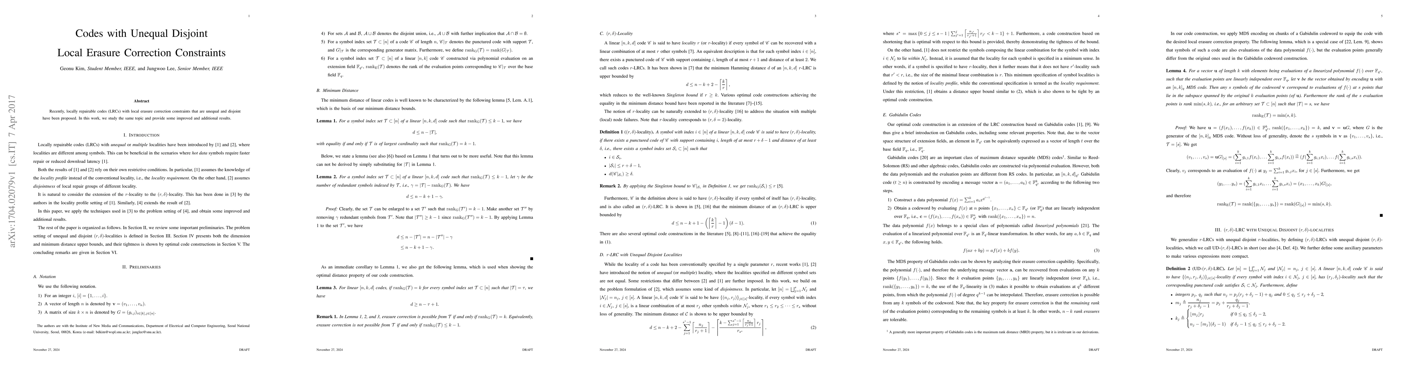 Recently, locally repairable codes (LRCs) with local erasure correction constraints that are unequal and disjoint have been proposed. In this work, we study the same topic and provide some improved and additional results.