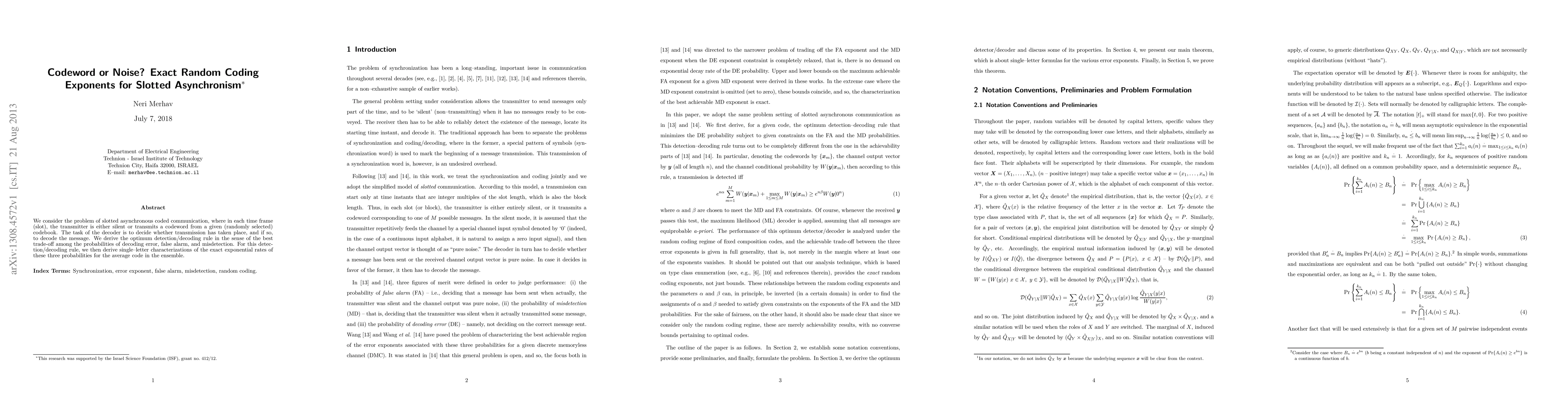 This paper explores slotted asynchronous coded communication, deriving the optimal detection/decoding rule for minimizing error, false alarm, and misdetection probabilities. It provides exact random coding exponents for these probabilities in the average code ensemble.