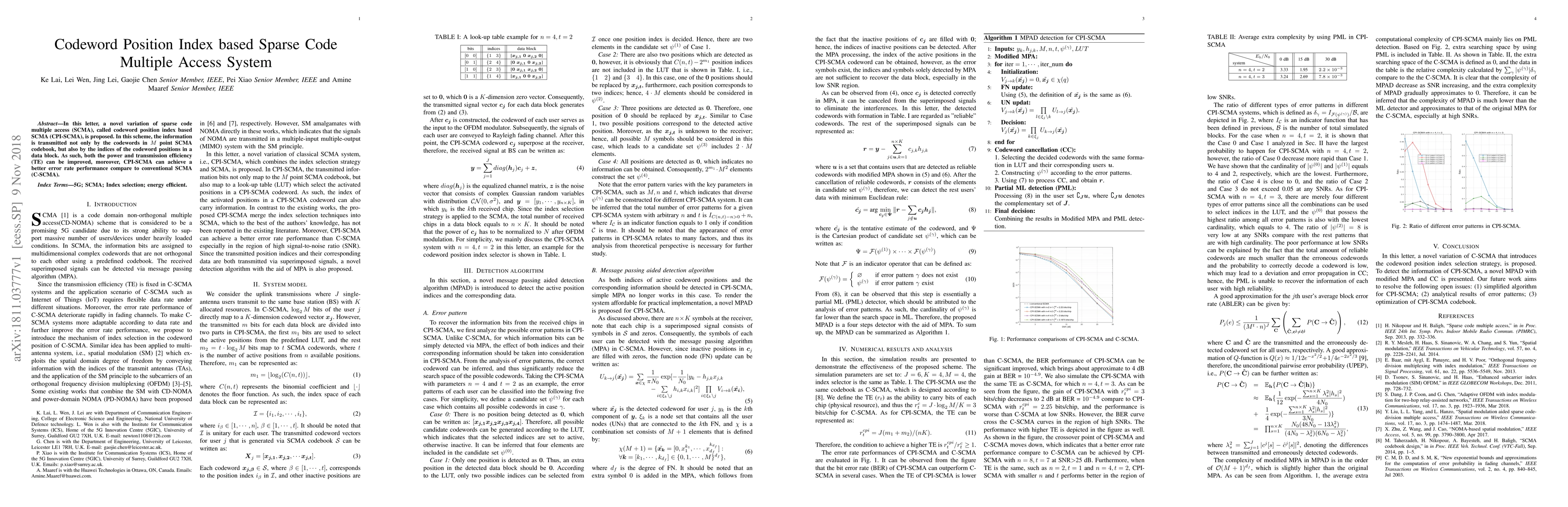The paper introduces CPI-SCMA, a new SCMA variant that enhances power and transmission efficiency by using both codewords and their positions' indices in a data block. CPI-SCMA outperforms conventional SCMA in error rate performance.