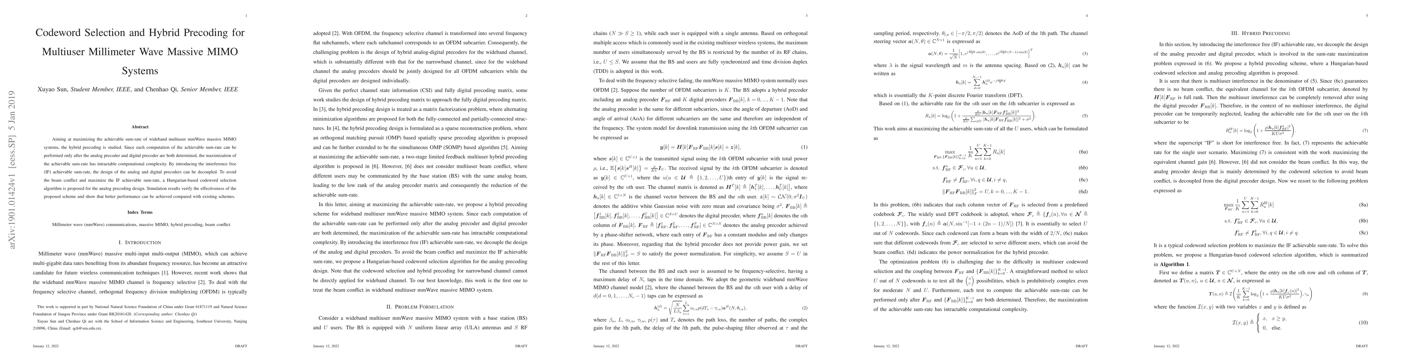 This paper proposes a hybrid precoding method for maximizing the sum-rate in multiuser millimeter wave massive MIMO systems. It introduces a Hungarian-based codeword selection algorithm to decouple the design of analog and digital precoders, thereby avoiding beam conflicts and enhancing performance.