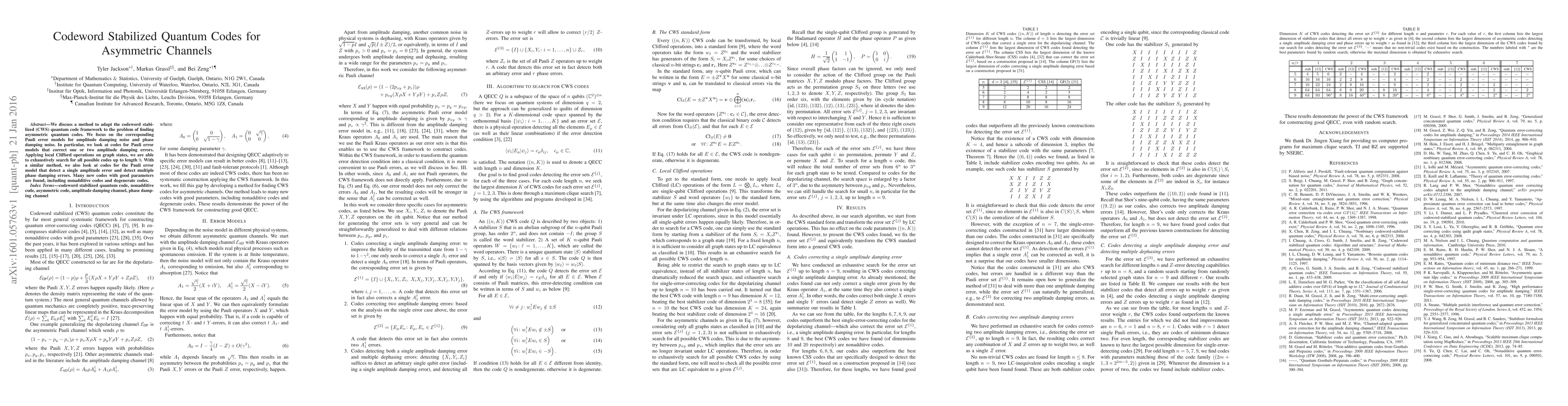 This paper presents a method for adapting codeword stabilized quantum codes to asymmetric quantum channels, focusing on Pauli error models for amplitude and phase damping noise. It exhaustively searches for optimal codes up to length 9, discovering new codes with good parameters, including nonadditive and degenerate codes.