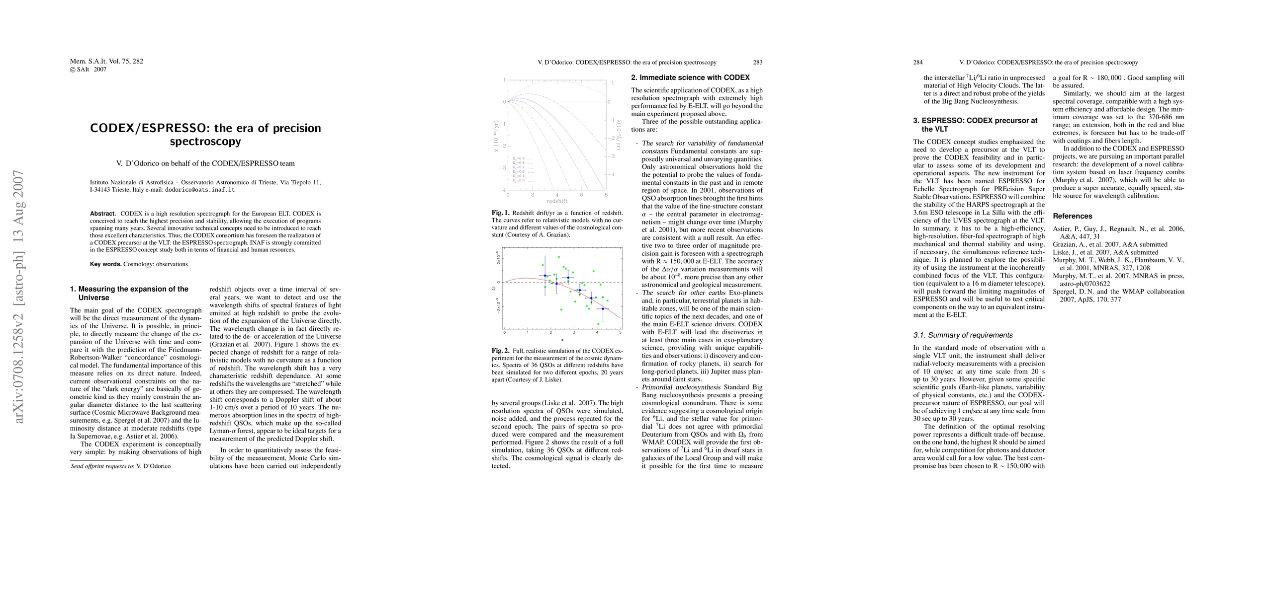 CODEX is a high-resolution spectrograph designed for the European ELT to achieve unprecedented precision and stability over long-term programs. To prepare for CODEX, the ESPRESSO spectrograph is being developed as a precursor at the VLT, with significant Italian involvement.