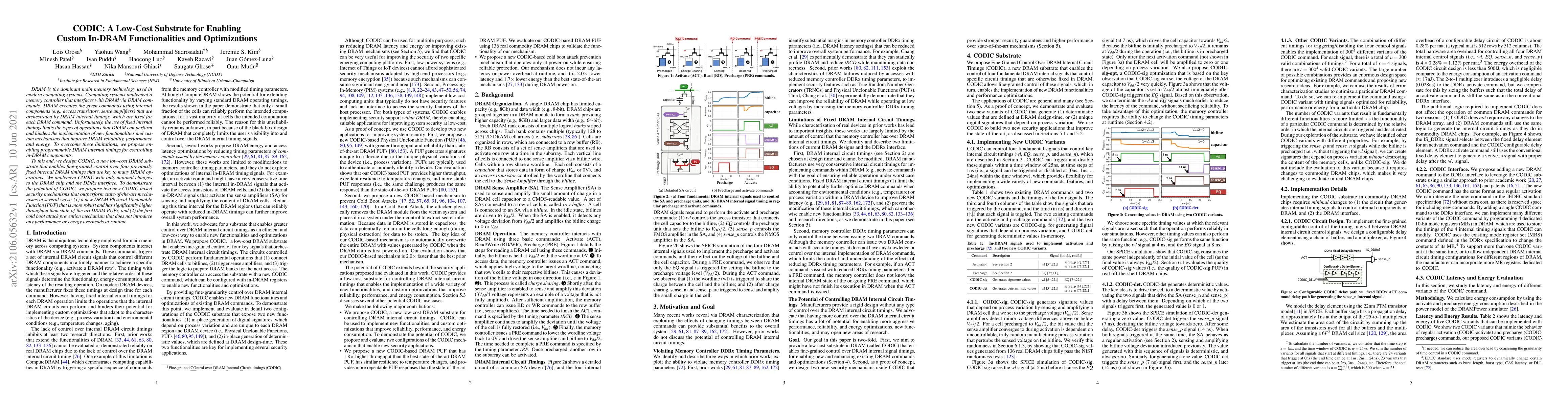 The paper proposes CODIC, a low-cost DRAM substrate that allows programmable internal timings to enable custom in-DRAM functionalities. CODIC demonstrates enhanced security mechanisms, including a more robust DRAM PUF and a cold boot attack prevention method without performance or energy overheads.