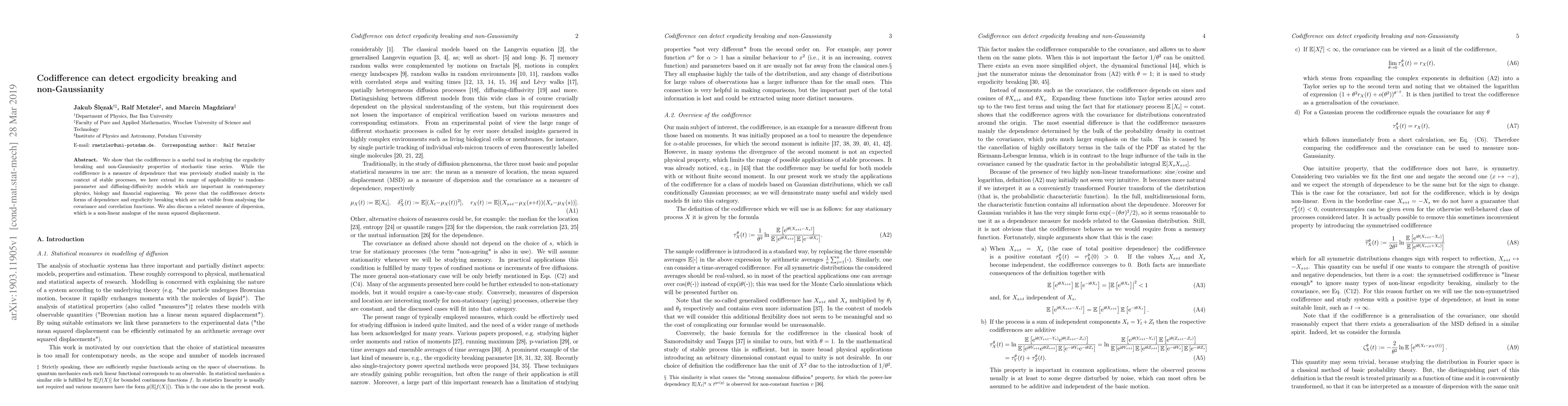 The codifference is a novel tool for detecting ergodicity breaking and non-Gaussianity in stochastic time series, extending beyond stable processes to applications in physics, biology, and financial engineering. It reveals dependencies and ergodicity breaking that are not evident through traditional covariance and correlation analysis.