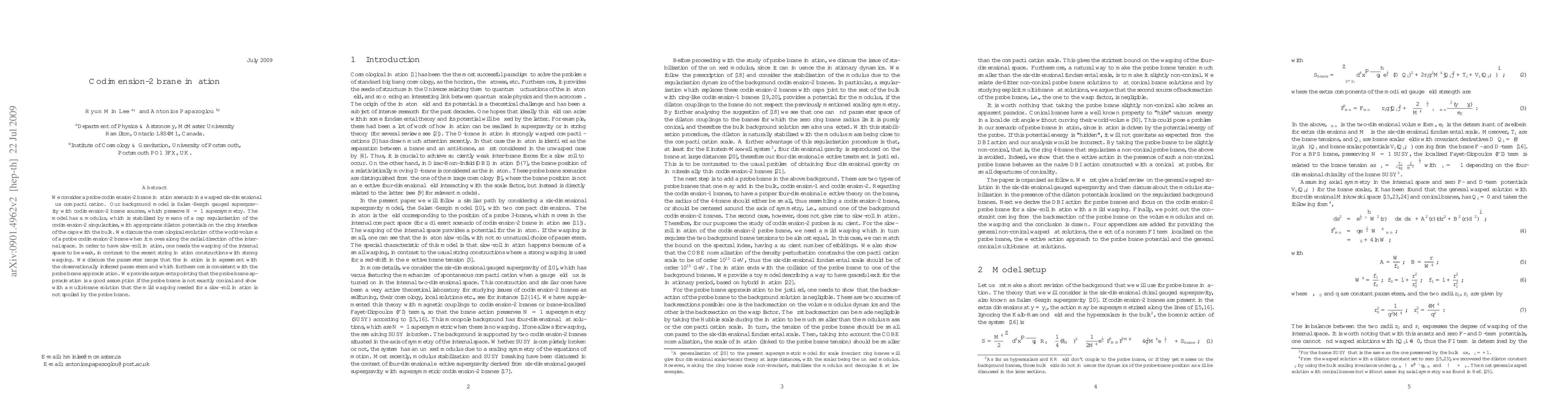 The paper presents a detailed analysis of a codimension-2 brane inflation model within a warped flux compactification, providing conditions for slow-roll inflation and discussing the validity of the probe brane approximation.