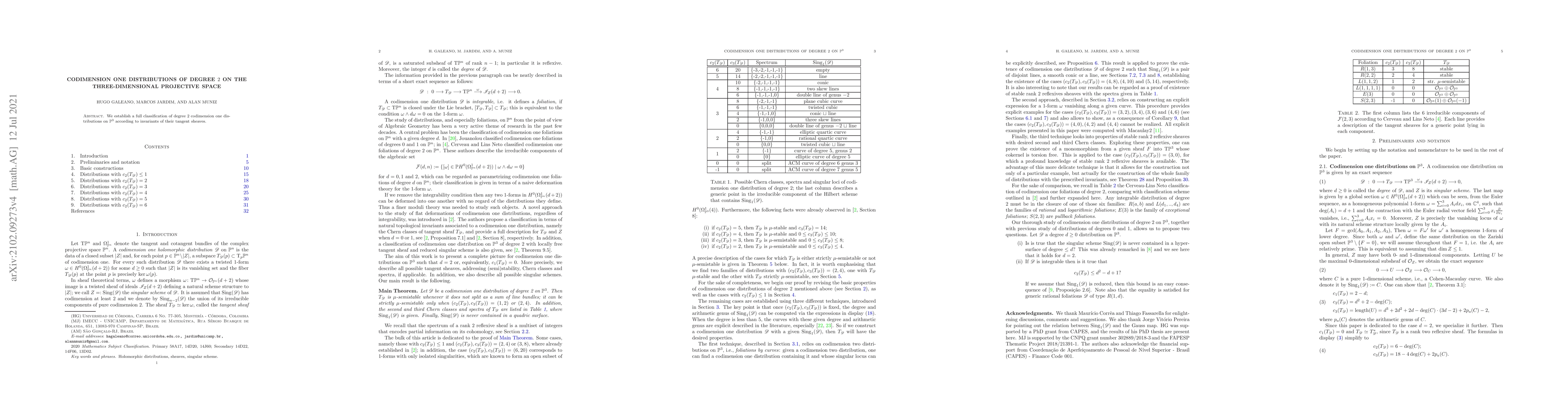 We establish a full classification of degree $2$ codimension one distributions on $\mathbb{P}^3$ according to invariants of their tangent sheaves.