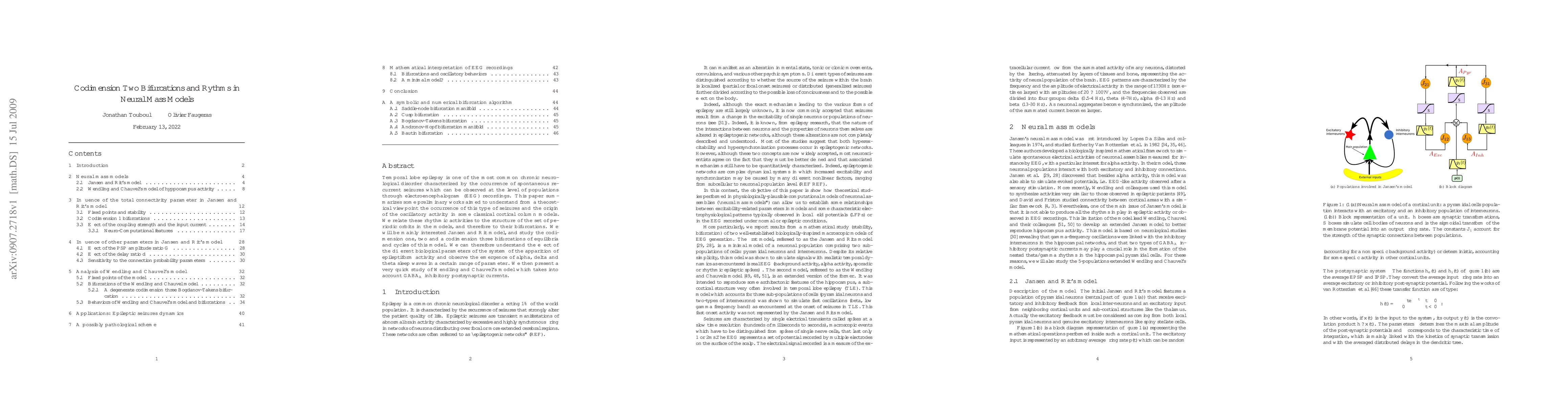 This paper investigates the theoretical underpinnings of temporal lobe epilepsy, focusing on bifurcations in neural mass models like Jansen and Rit to understand seizure rhythms and oscillatory activities. It examines codimension one, two, and three bifurcations, elucidating the role of biological parameters in epileptiform activity and the emergence of sleep waves.