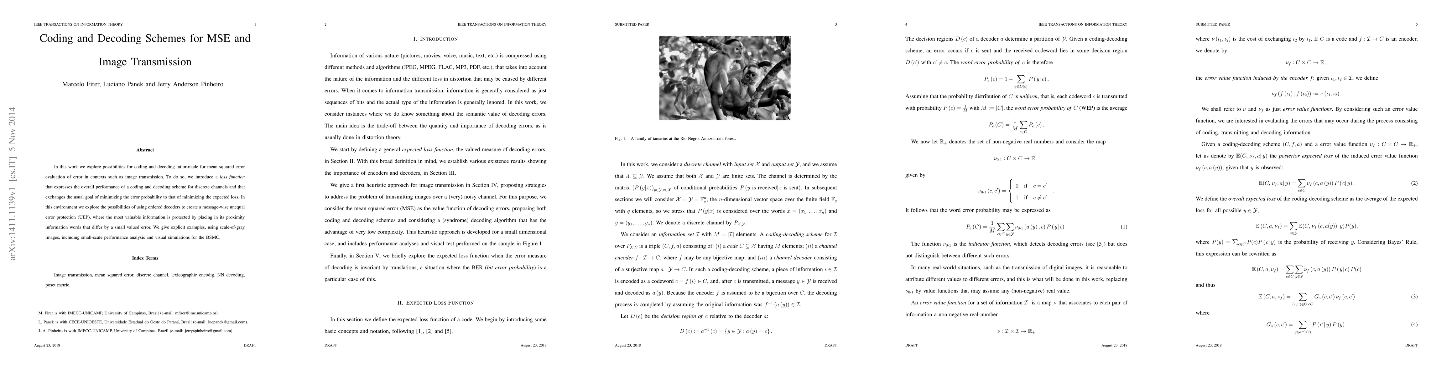 In this work we explore possibilities for coding and decoding tailor-made for mean squared error evaluation of error in contexts such as image transmission. To do so, we introduce a loss function that expresses the overall performance of a coding and decoding scheme for discrete channels and that exchanges the usual goal of minimizing the error probability to that of minimizing the expected loss. In this environment we explore the possibilities of using ordered decoders to create a message-wise unequal error protection (UEP), where the most valuable information is protected by placing in its proximity information words that differ by a small valued error. We give explicit examples, using scale-of-gray images, including small-scale performance analysis and visual simulations for the BSMC.