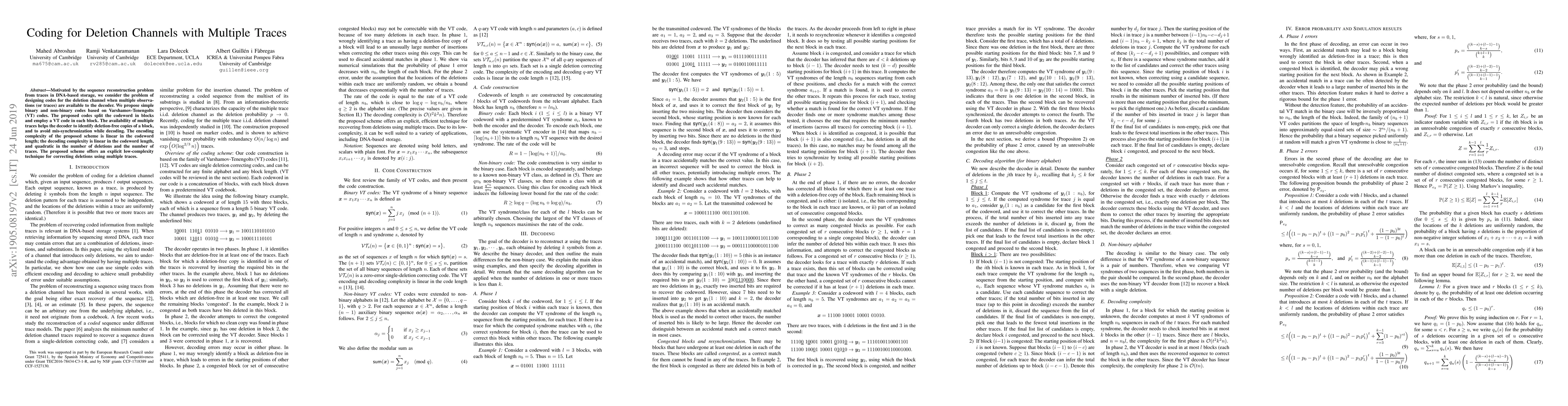 This paper proposes simple binary and non-binary codes to correct deletion errors in DNA storage using multiple traces, with linear encoding and decoding complexity.