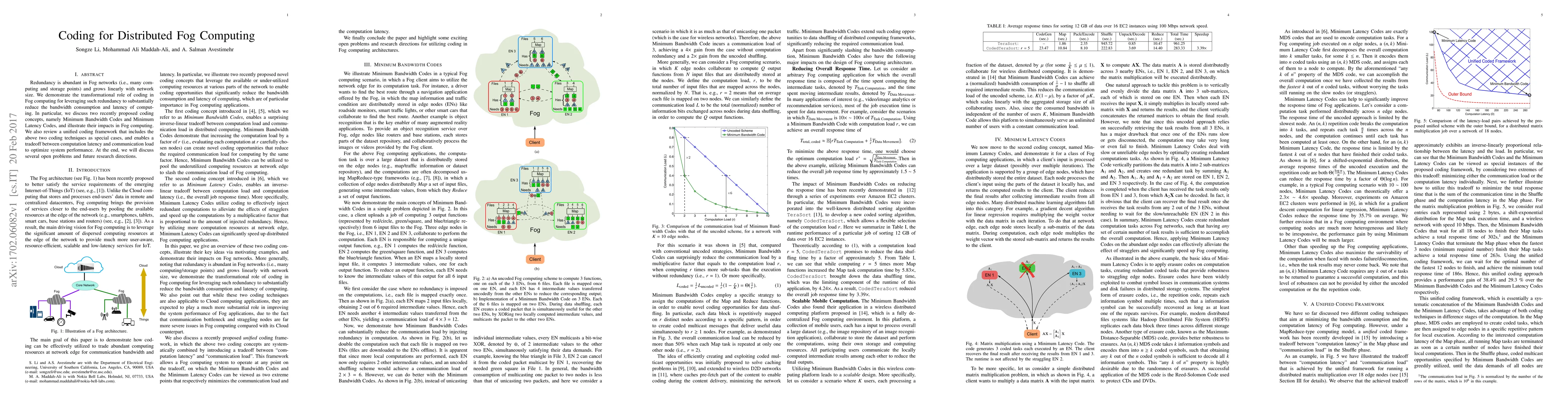 This paper explores coding techniques in Fog computing to optimize bandwidth and latency by leveraging redundancy in Fog networks. It introduces Minimum Bandwidth Codes and Minimum Latency Codes, and proposes a unified coding framework to balance computation and communication load, while also identifying open problems and future research directions.