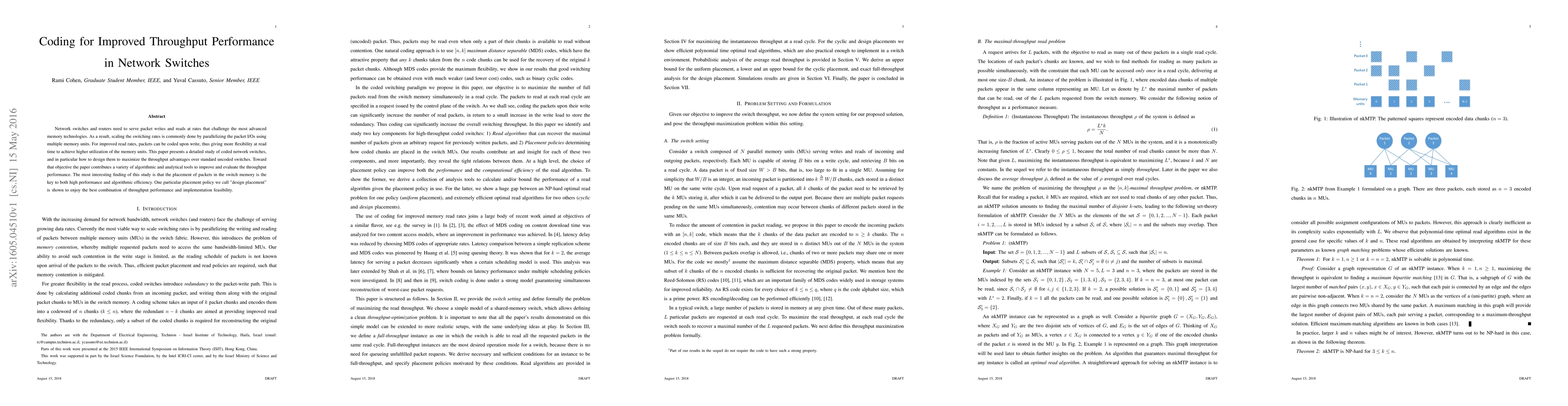 This paper investigates coded network switches to enhance throughput performance by parallelizing packet I/Os and optimizing packet placement strategies. The study introduces "design placement" as the optimal policy for maximizing throughput advantages over uncoded switches, demonstrating its superior performance and feasibility.