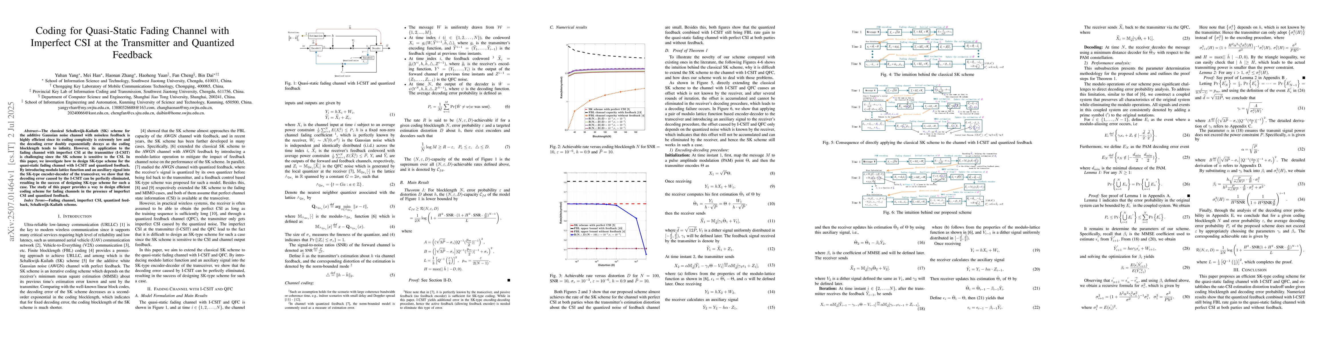 The classical Schalkwijk-Kailath (SK) scheme for the additive Gaussian noise channel with noiseless feedback is highly efficient since its coding complexity is extremely low and the decoding error doubly exponentially decays as the coding blocklength tends to infinity. However, its application to the fading channel with imperfect CSI at the transmitter (I-CSIT) is challenging since the SK scheme is sensitive to the CSI. In this paper, we investigate how to design SK-type scheme for the quasi-static fading channel with I-CSIT and quantized feedback. By introducing modulo lattice function and an auxiliary signal into the SK-type encoder-decoder of the transceiver, we show that the decoding error caused by the I-CSIT can be perfectly eliminated, resulting in the success of designing SK-type scheme for such a case. The study of this paper provides a way to design efficient coding scheme for fading channels in the presence of imperfect CSI and quantized feedback.
