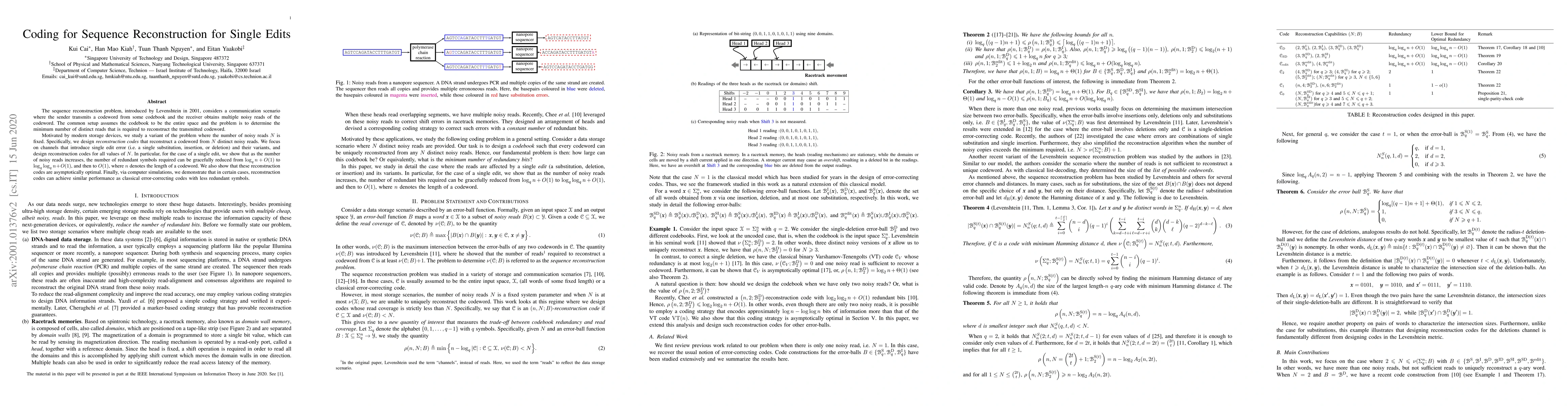 This research paper develops reconstruction codes that can accurately reconstruct a codeword from a fixed number of noisy reads with single edit error. The findings show that the redundancy required for these codes can be reduced as the number of reads increases, approaching optimal.
