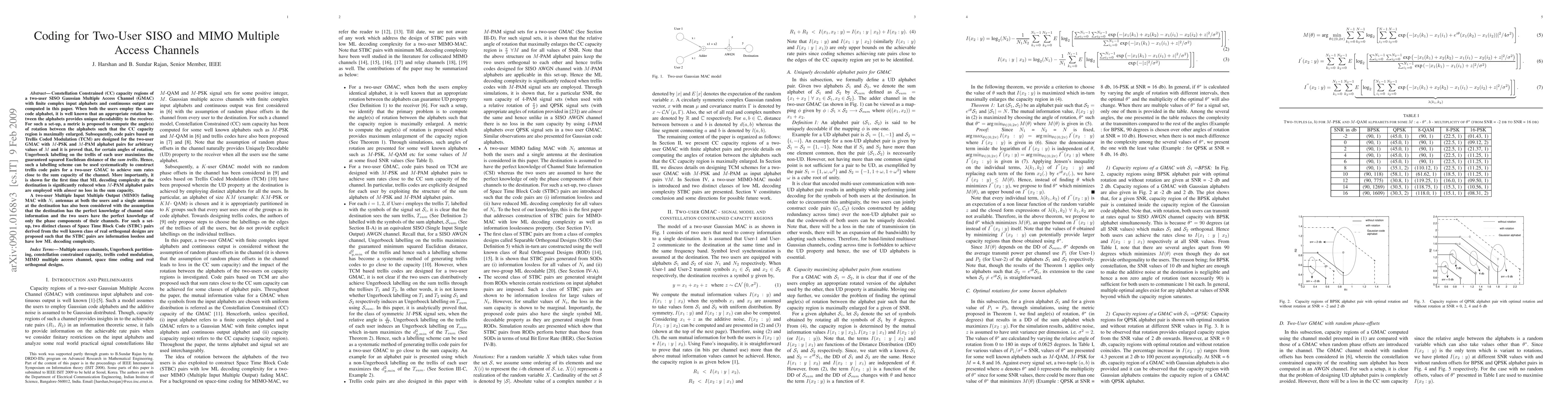 Constellation Constrained (CC) capacity regions of a two-user SISO Gaussian Multiple Access Channel (GMAC) with finite complex input alphabets and continuous output are computed in this paper. When both the users employ the same code alphabet, it is well known that an appropriate rotation between the alphabets provides unique decodability to the receiver. For such a set-up, a metric is proposed to compute the angle(s) of rotation between the alphabets such that the CC capacity region is maximally enlarged. Subsequently, code pairs based on Trellis Coded Modulation (TCM) are designed for the two-user GMAC with $M$-PSK and $M$-PAM alphabet pairs for arbitrary values of $M$ and it is proved that, for certain angles of rotation, Ungerboeck labelling on the trellis of each user maximizes the guaranteed squared Euclidean distance of the \textit{sum trellis}. Hence, such a labelling scheme can be used systematically to construct trellis code pairs for a two-user GMAC to achieve sum rates close to the sum capacity of the channel. More importantly, it is shown for the first time that ML decoding complexity at the destination is significantly reduced when $M$-PAM alphabet pairs are employed with \textit{almost} no loss in the sum capacity. \indent A two-user Multiple Input Multiple Output (MIMO) fading MAC with $N_{t}$ antennas at both the users and a single antenna at the destination has also been considered with the assumption that the destination has the perfect knowledge of channel state information and the two users have the perfect knowledge of only the phase components of their channels. For such a set-up, two distinct classes of Space Time Block Code (STBC) pairs derived from the well known class of real orthogonal designs are proposed such that the STBC pairs are information lossless and have low ML decoding complexity.
