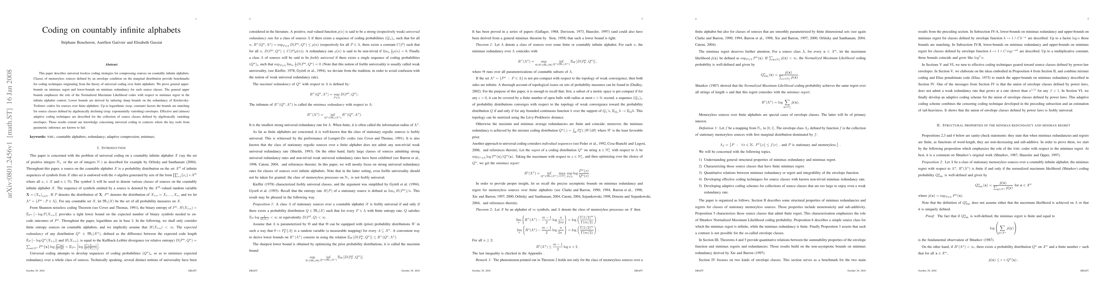 This paper explores universal lossless coding strategies for countably infinite alphabets, establishing upper and lower bounds for minimax regret and redundancy. The study highlights the effectiveness of Normalized Maximum Likelihood codes and extends existing knowledge on universal coding to infinite alphabet contexts.