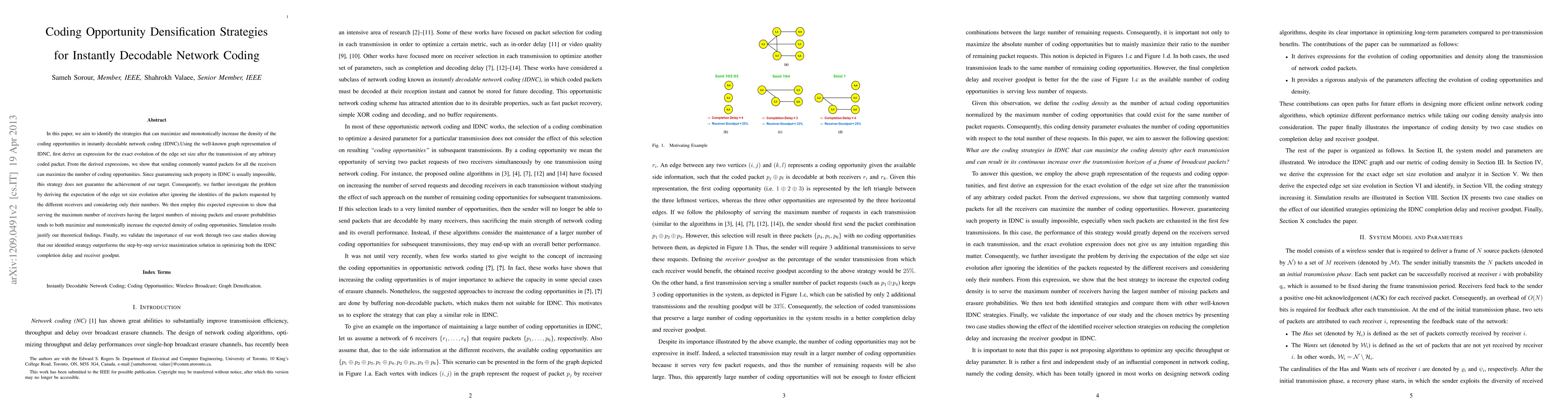 This paper explores strategies to maximize and monotonically increase coding opportunity density in instantly decodable network coding (IDNC). It finds that serving the most receivers with the largest numbers of missing packets and highest erasure probabilities optimizes this density, validated by simulations and case studies.