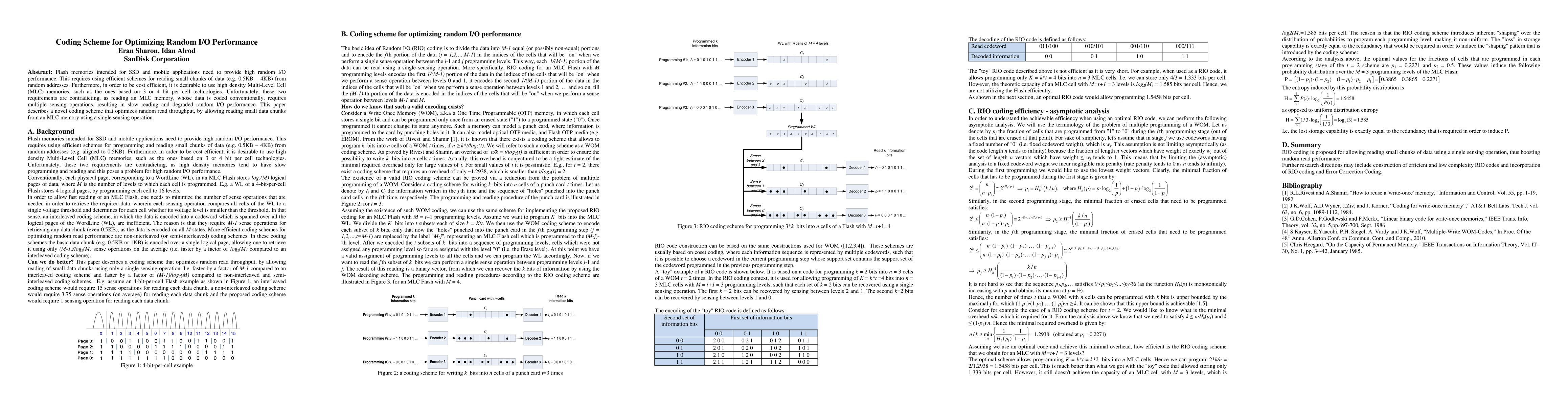 A new coding scheme is presented to optimize random read performance in flash memories used for SSDs and mobile applications. It allows reading small data chunks from high-density Multi-Level Cell (MLC) memories using a single sensing operation.
