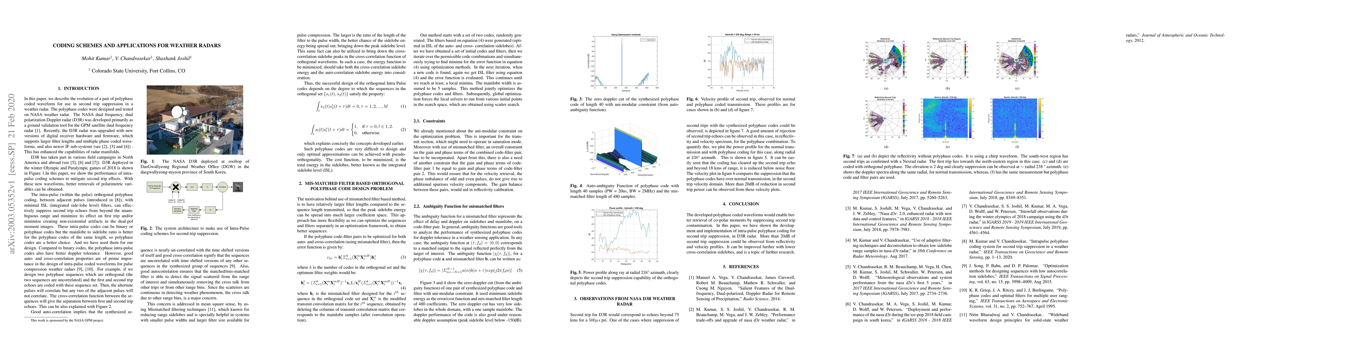 In this paper, we describe the evolution of a pair of polyphase coded waveform for use in second trip suppression in weather radar. The polyphase codes were designed and tested on NASA weather radar. The NASA dual-frequency, dual-polarization Doppler radar (D3R) was developed primarily as a ground validation tool for the GPM satellite dual-frequency radar. Recently, the D3R radar was upgraded with new versions of digital receiver hardware and firmware, which supports larger filter lengths and multiple phase coded waveforms, and also newer IF sub-systems. This has enhanced the capabilities of radar manifolds.