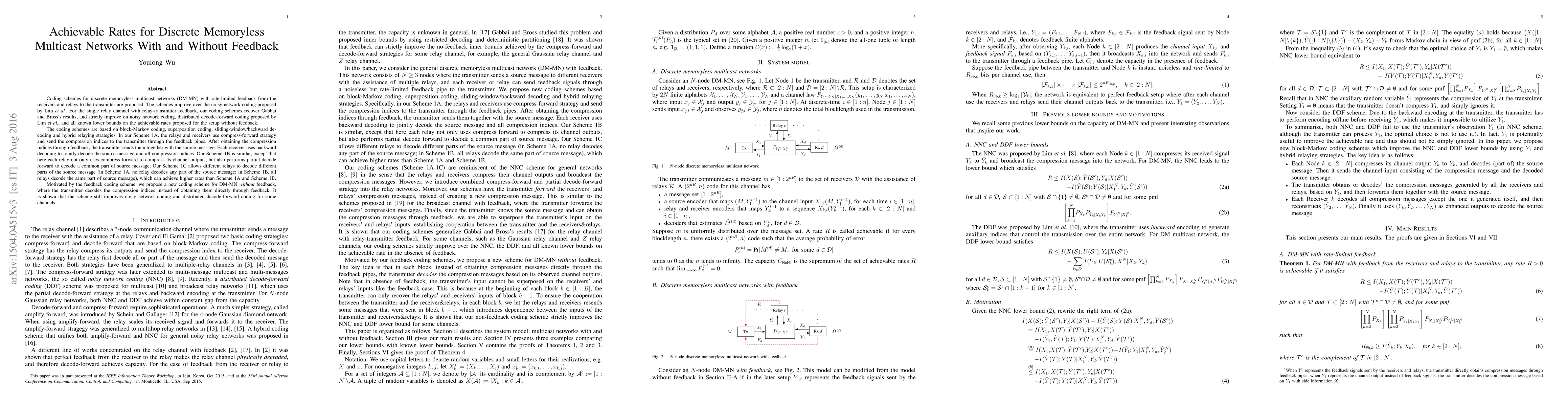 This paper proposes coding schemes for discrete memoryless multicast networks with rate-limited feedback, improving upon existing methods like noisy network coding. The schemes utilize block-Markov coding, superposition coding, and hybrid relaying strategies, achieving higher rates than previous approaches.