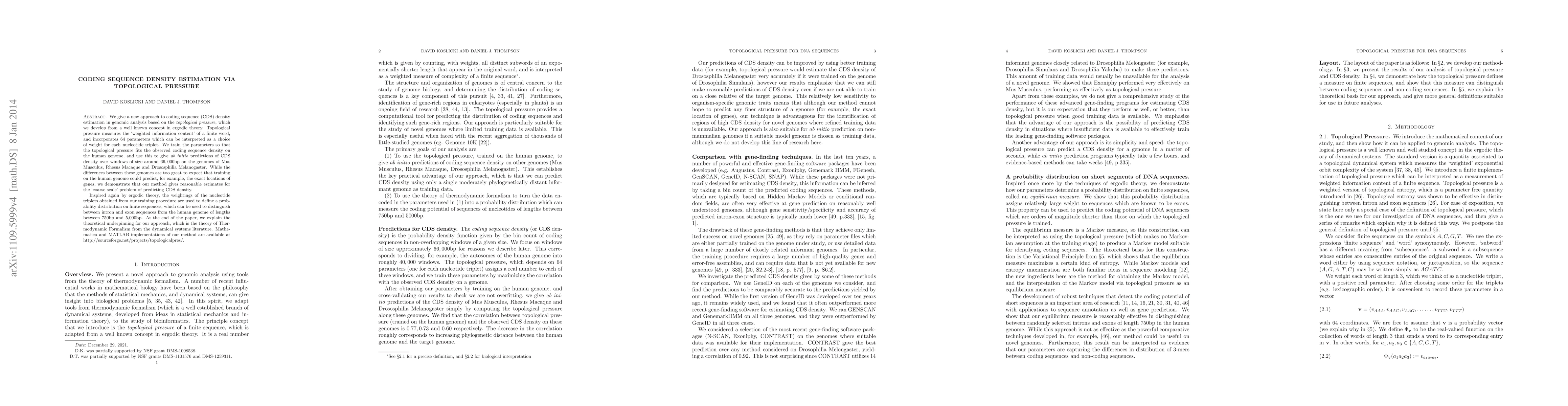 This research paper introduces a new method for estimating coding sequence density in genomes using topological pressure, achieving reasonable estimates on the human genome and other species.