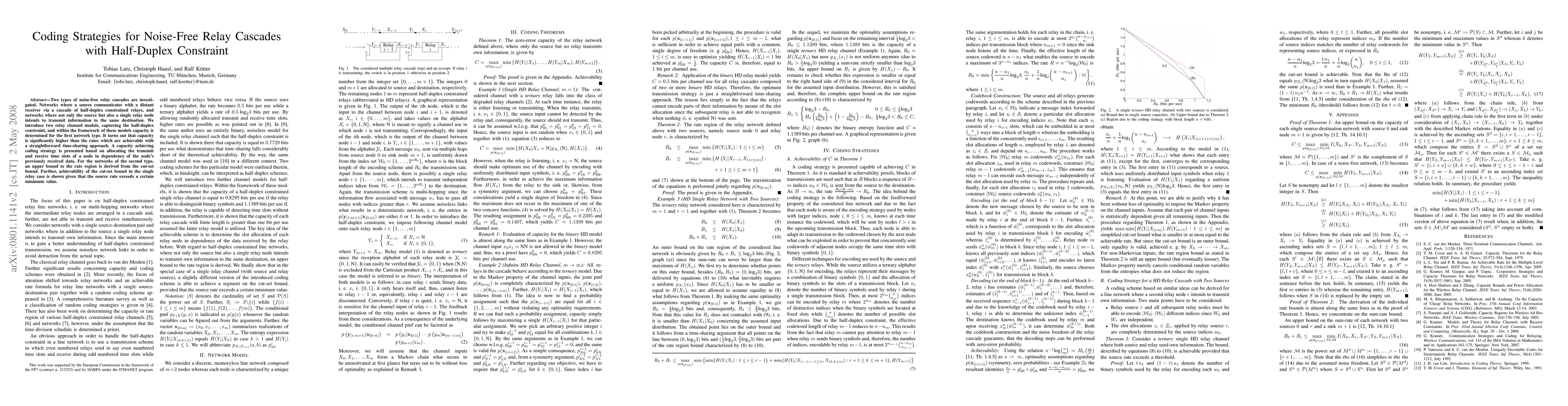 This paper investigates noise-free relay cascades under half-duplex constraints, determining capacity for two network types. It introduces a capacity-achieving coding strategy for the first type, showing higher capacity than time-sharing methods. For the second type, an upper bound on the rate region is derived, and achievability of the bound is shown for a single relay when the source rate exceeds a minimum value.
