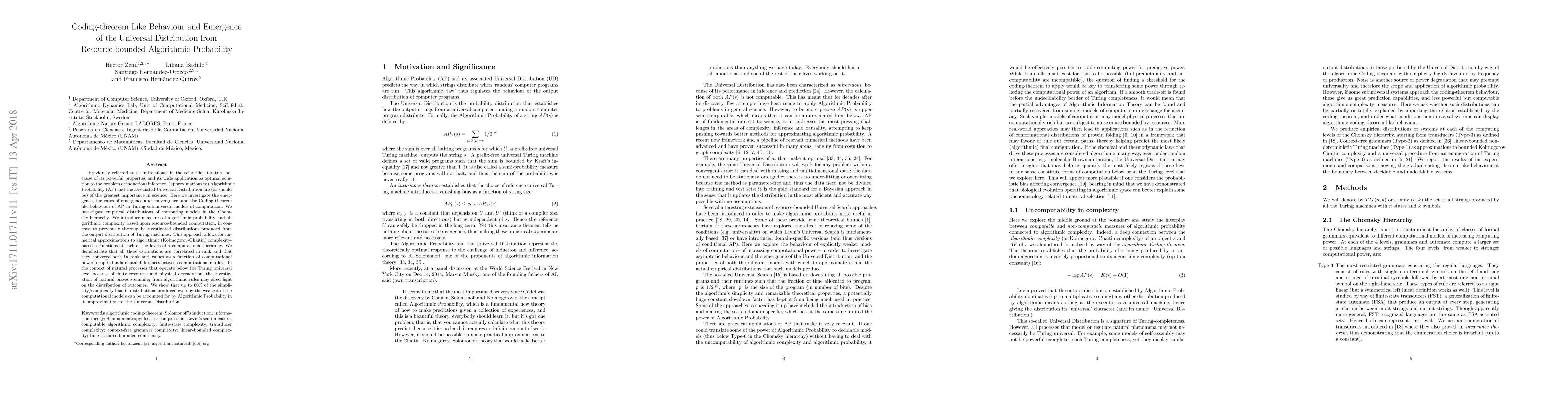 Previously referred to as `miraculous' in the scientific literature because of its powerful properties and its wide application as optimal solution to the problem of induction/inference, (approximations to) Algorithmic Probability (AP) and the associated Universal Distribution are (or should be) of the greatest importance in science. Here we investigate the emergence, the rates of emergence and convergence, and the Coding-theorem like behaviour of AP in Turing-subuniversal models of computation. We investigate empirical distributions of computing models in the Chomsky hierarchy. We introduce measures of algorithmic probability and algorithmic complexity based upon resource-bounded computation, in contrast to previously thoroughly investigated distributions produced from the output distribution of Turing machines. This approach allows for numerical approximations to algorithmic (Kolmogorov-Chaitin) complexity-based estimations at each of the levels of a computational hierarchy. We demonstrate that all these estimations are correlated in rank and that they converge both in rank and values as a function of computational power, despite fundamental differences between computational models. In the context of natural processes that operate below the Turing universal level because of finite resources and physical degradation, the investigation of natural biases stemming from algorithmic rules may shed light on the distribution of outcomes. We show that up to 60\% of the simplicity/complexity bias in distributions produced even by the weakest of the computational models can be accounted for by Algorithmic Probability in its approximation to the Universal Distribution.