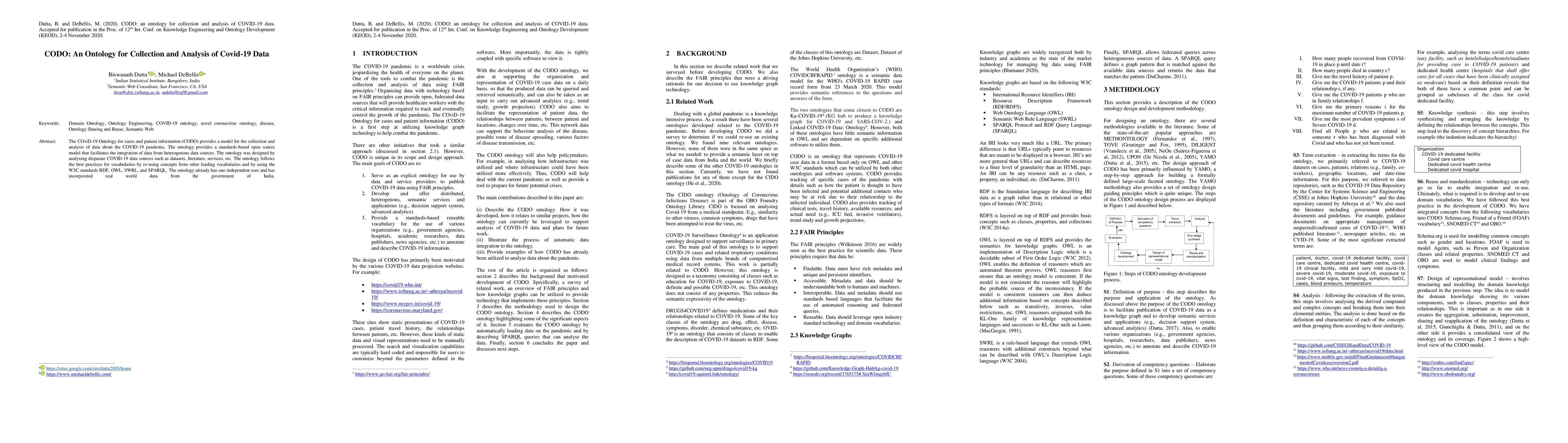 The COviD-19 Ontology (CODO) offers a standards-based open-source framework for integrating and analyzing COVID-19 data from diverse sources. It employs W3C standards and has been utilized to incorporate real-world data from the Indian government.