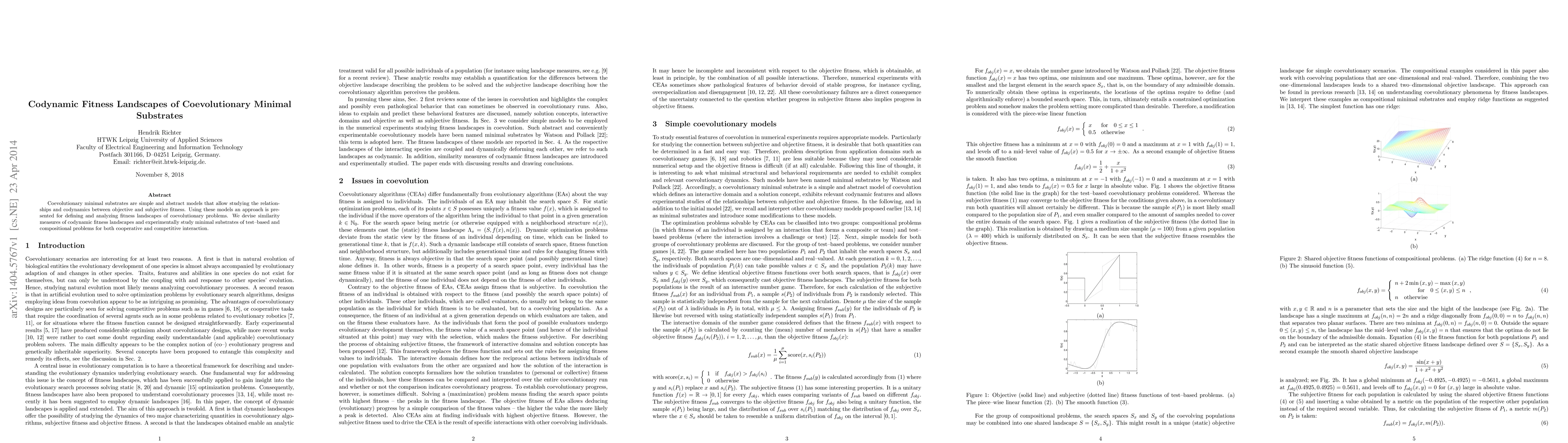 This paper explores coevolutionary minimal substrates to study codynamics between objective and subjective fitness, presenting a method for defining and analyzing coevolutionary fitness landscapes. It introduces similarity measures for these landscapes and examines test-based and compositional problems in both cooperative and competitive contexts.