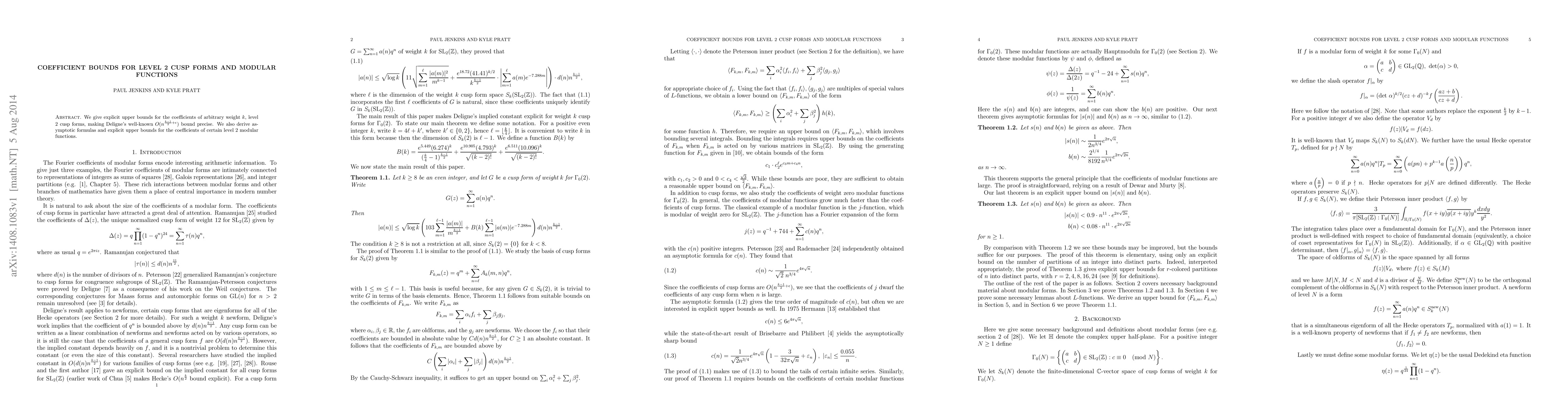 This paper provides precise upper bounds for coefficients of level 2 cusp forms, building on Deligne's earlier bound, with implications for modular functions.