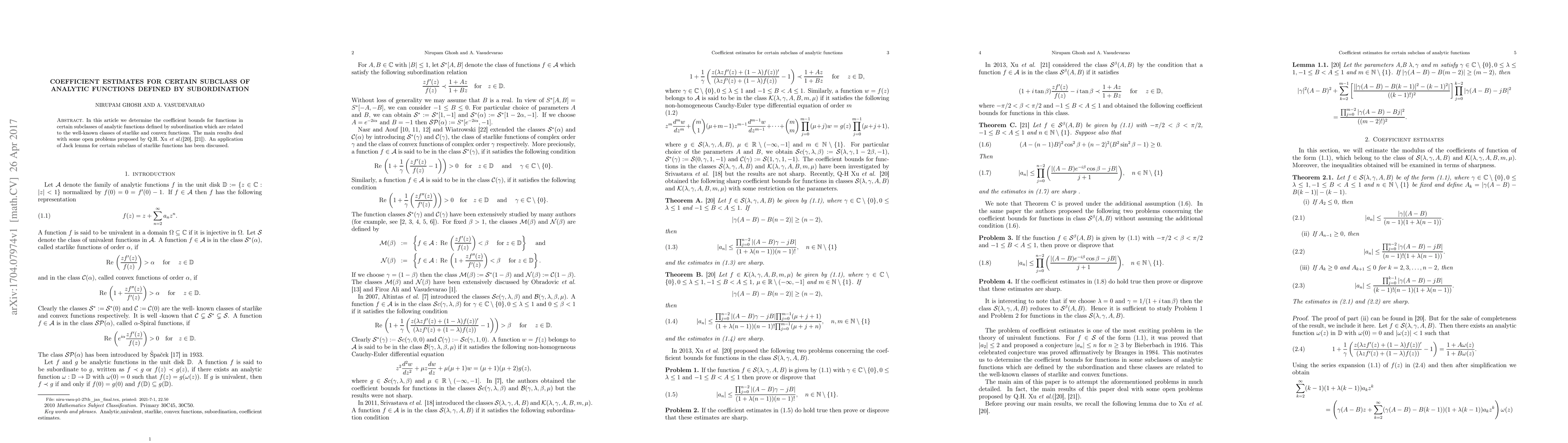This paper determines coefficient bounds for a subclass of analytic functions defined by subordination, focusing on those related to starlike and convex functions. It addresses open problems proposed by Q.H. Xu et al. and applies the Jack lemma to a specific subclass of starlike functions.