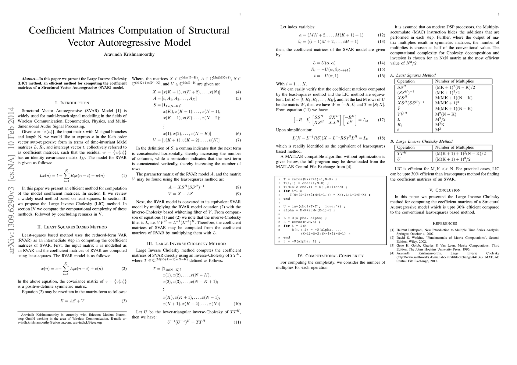 This paper introduces the Large Inverse Cholesky (LIC) method for efficiently computing coefficient matrices in Structural Vector Autoregressive (SVAR) models, offering a significant improvement over existing computational techniques. The LIC method enhances the accuracy and speed of SVAR model analysis.