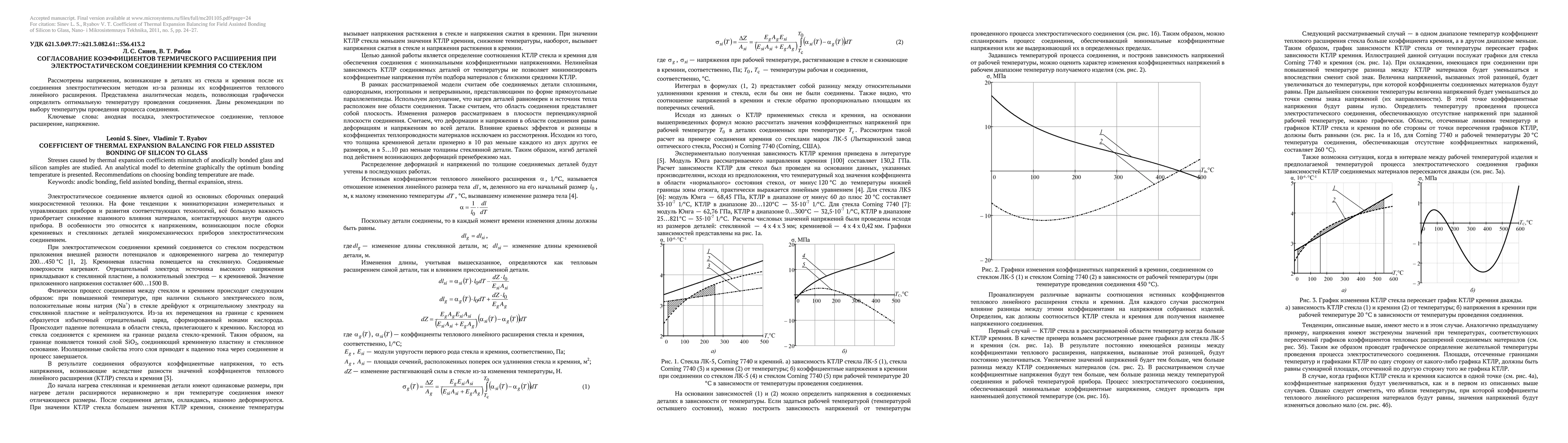 This paper presents an analytical model to determine the optimal bonding temperature for silicon to glass field assisted bonding, addressing stresses from thermal expansion coefficient mismatches. Recommendations are provided for bonding specific glass brands, considering the integration of thermal expansion differences.