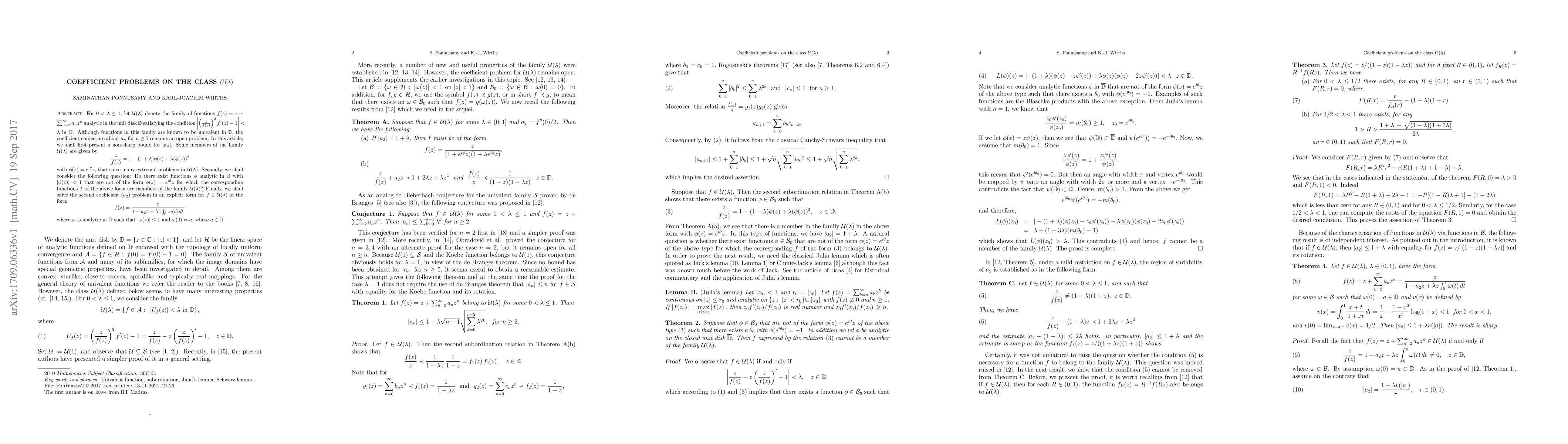 Researchers investigate functions in the $U( heta)$ family, exploring a conjecture about coefficient $a_n$ for $n heg 5$, and find explicit solutions for certain member functions, shedding light on extremal problems and properties of these univalent functions.