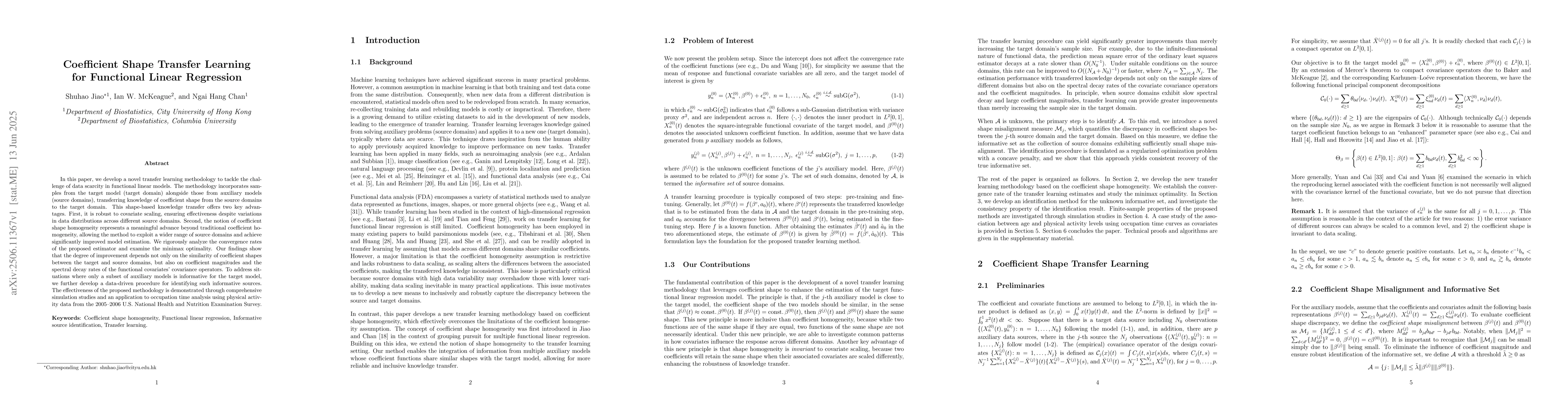 In this paper, we develop a novel transfer learning methodology to tackle the challenge of data scarcity in functional linear models. The methodology incorporates samples from the target model (target domain) alongside those from auxiliary models (source domains), transferring knowledge of coefficient shape from the source domains to the target domain. This shape-based knowledge transfer offers two key advantages. First, it is robust to covariate scaling, ensuring effectiveness despite variations in data distributions across different source domains. Second, the notion of coefficient shape homogeneity represents a meaningful advance beyond traditional coefficient homogeneity, allowing the method to exploit a wider range of source domains and achieve significantly improved model estimation. We rigorously analyze the convergence rates of the proposed estimator and examine the minimax optimality. Our findings show that the degree of improvement depends not only on the similarity of coefficient shapes between the target and source domains, but also on coefficient magnitudes and the spectral decay rates of the functional covariates covariance operators. To address situations where only a subset of auxiliary models is informative for the target model, we further develop a data-driven procedure for identifying such informative sources. The effectiveness of the proposed methodology is demonstrated through comprehensive simulation studies and an application to occupation time analysis using physical activity data from the U.S. National Health and Nutrition Examination Survey.