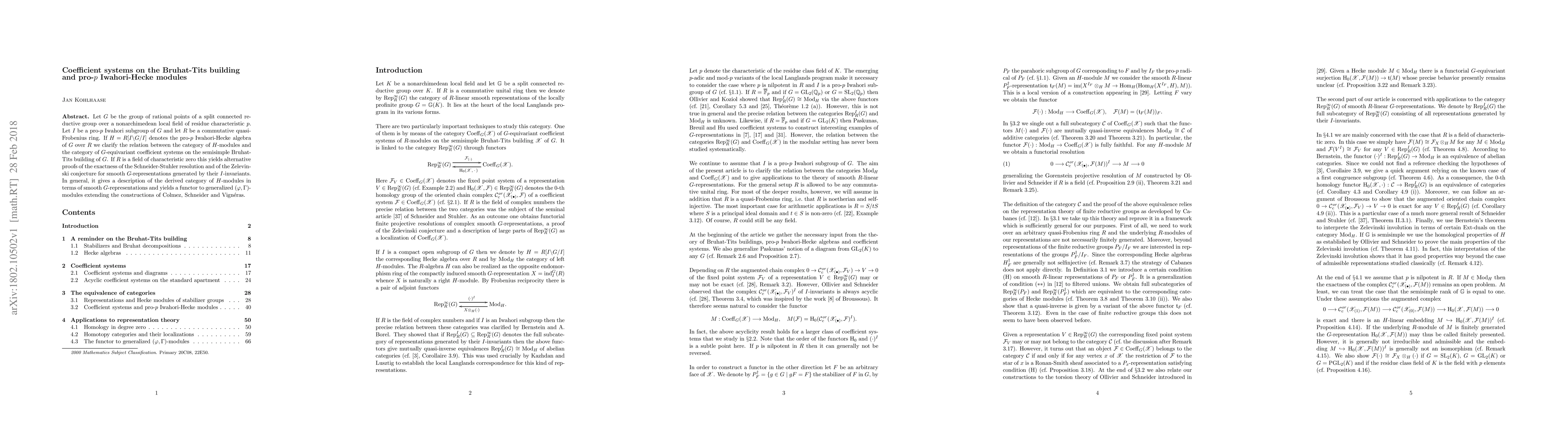This paper explores the relationship between $H$-modules and $G$-equivariant coefficient systems on the Bruhat-Tits building, providing alternative proofs for the exactness of the Schneider-Stuhler resolution and the Zelevinski conjecture when the base ring is of characteristic zero. It also describes the derived category of $H$-modules in terms of smooth $G$-representations and extends the constructions of $(\varphi,\Gamma)$-modules.