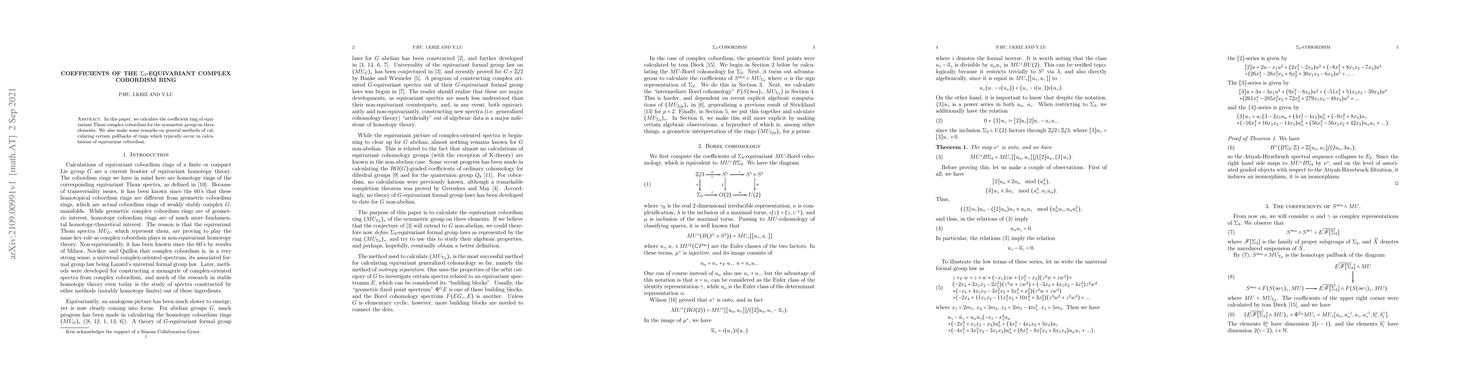 This paper calculates the coefficient ring of equivariant Thom complex cobordism for the symmetric group on three elements, providing new insights into equivariant cobordism calculations.