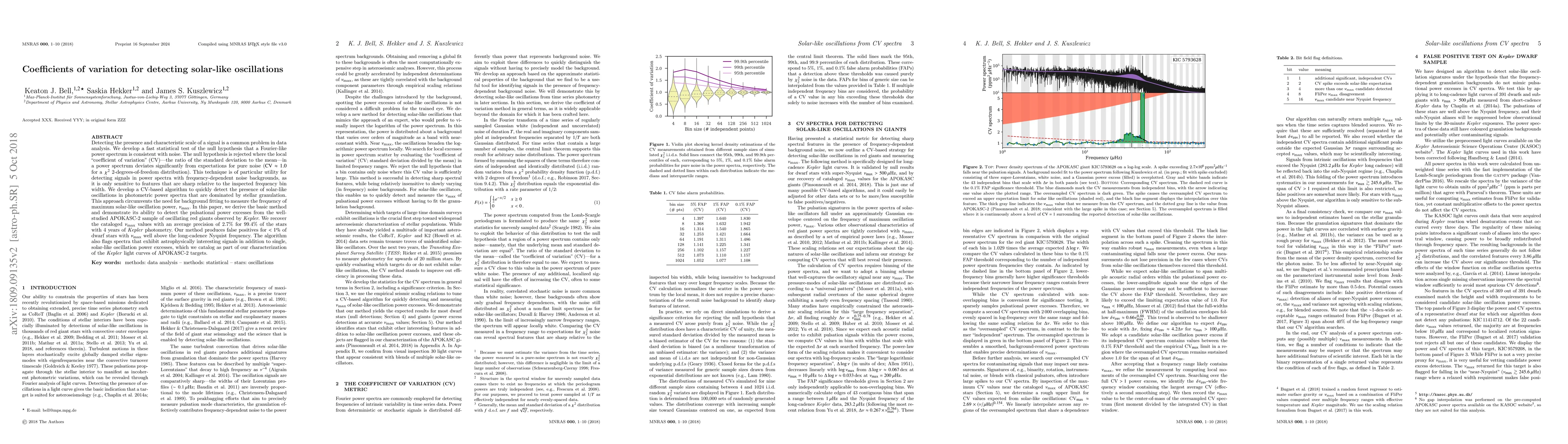 This paper develops a CV-based statistical test to detect solar-like oscillations in noisy power spectra, particularly useful for stars with frequency-dependent noise. The method successfully identifies pulsational power excesses in the APOKASC-2 sample, achieving a 2.7% precision in measuring nu_max for most stars.