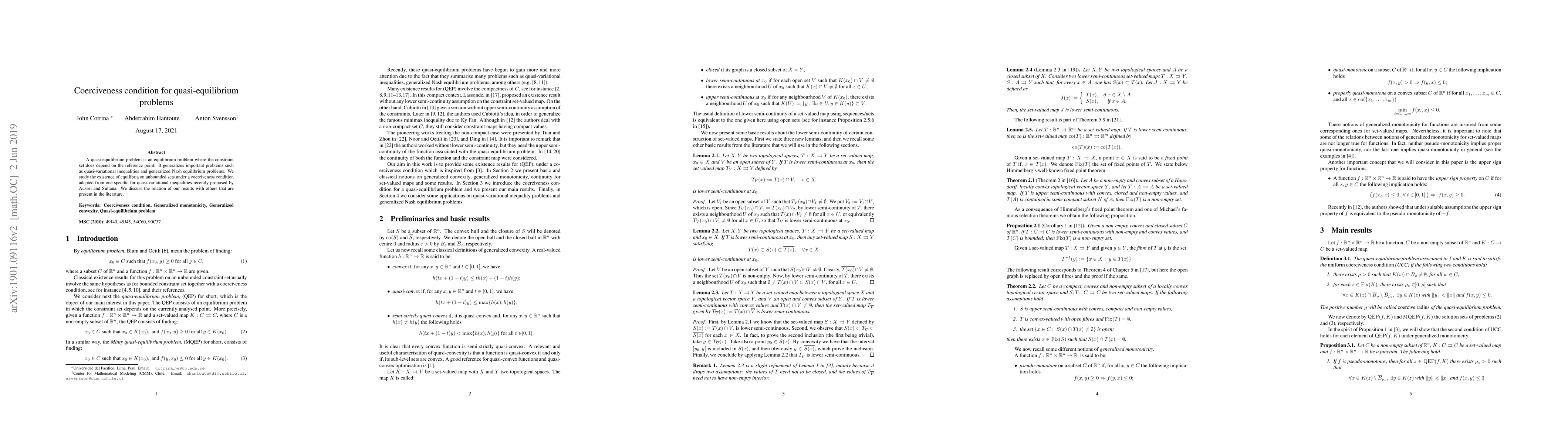This paper explores the existence of equilibria in quasi-equilibrium problems under a coerciveness condition, extending results to unbounded sets. It discusses relations with existing literature on quasi-variational inequalities and generalized Nash equilibrium problems.