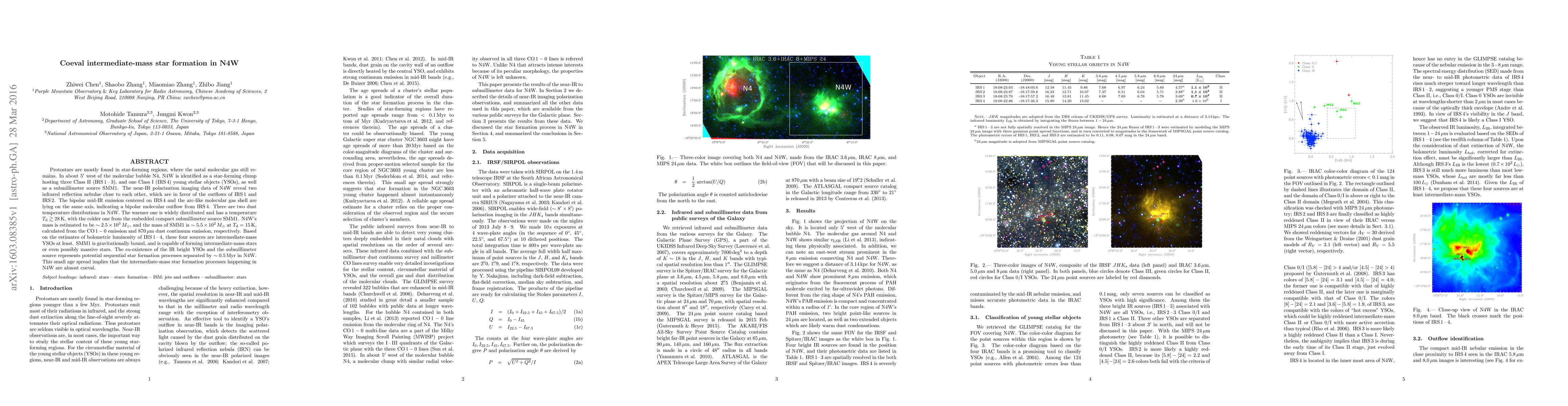 The research paper investigates N4W, a star-forming region near the molecular bubble N4, revealing the coeval formation of intermediate-mass stars. The study identifies multiple young stellar objects and a submillimeter source indicating sequential star formation processes occurring nearly simultaneously within the region.