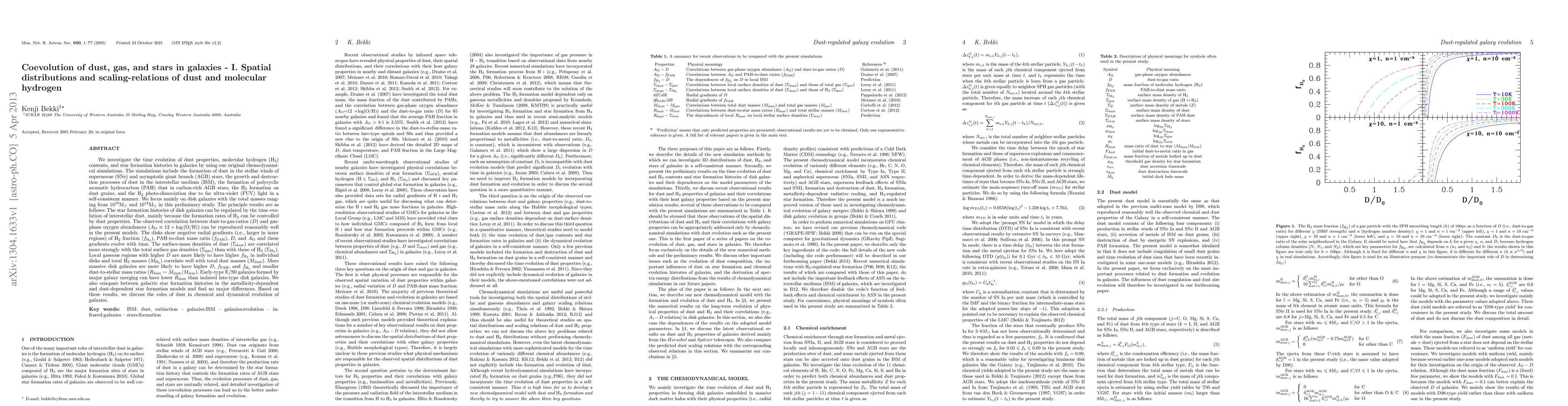 This paper uses chemodynamical simulations to explore the coevolution of dust, molecular hydrogen, and star formation in disk galaxies. The study finds that interstellar dust regulates star formation histories and that dust-to-gas ratios correlate with gas-phase oxygen abundances, showing negative radial gradients in disk galaxies.